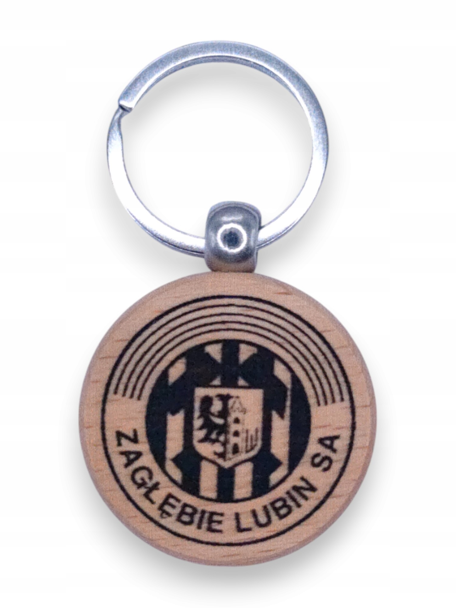 Drewniany brelok Zagłębie Lubin – grawer z logo, prezent dla kibica
