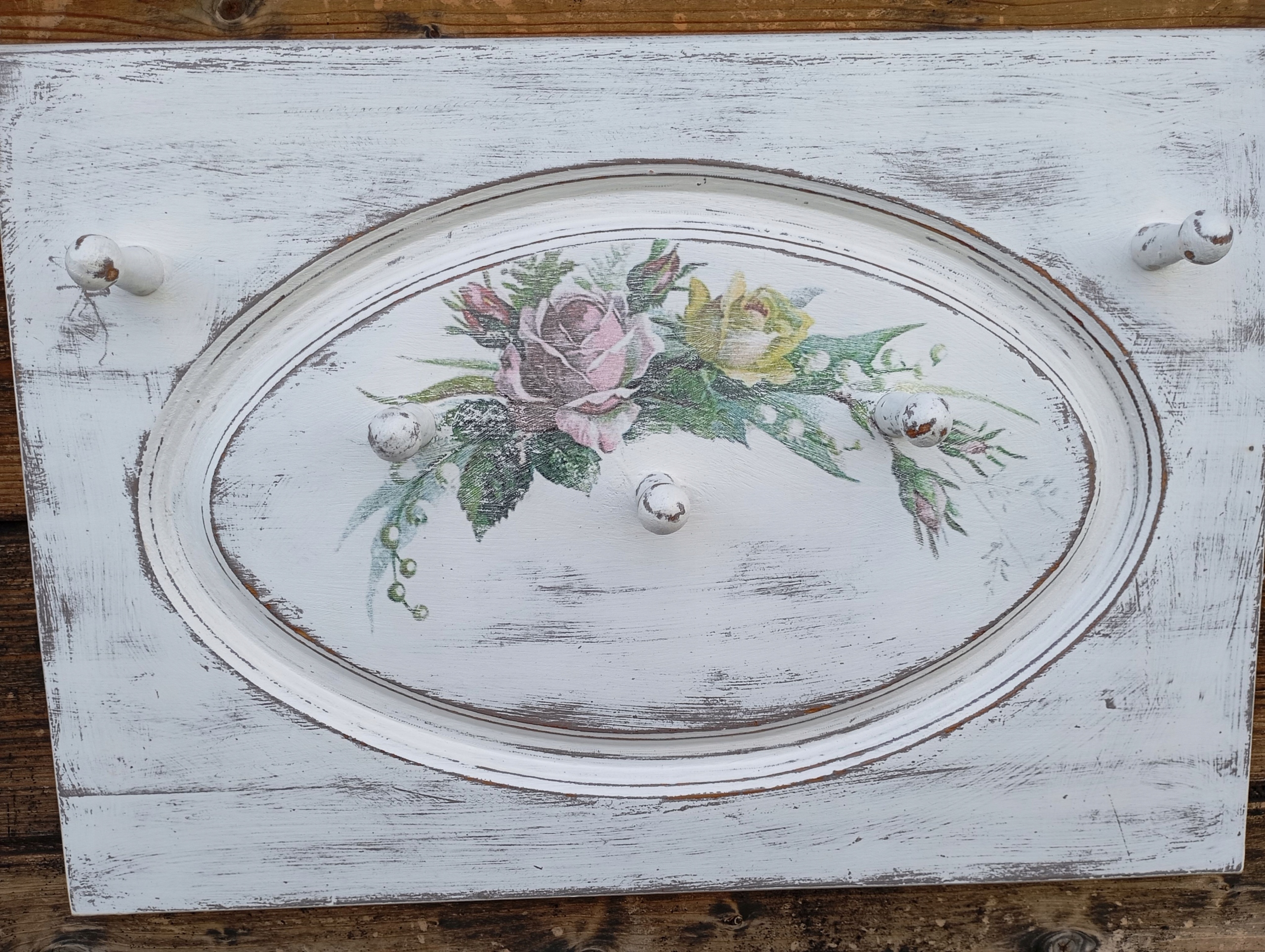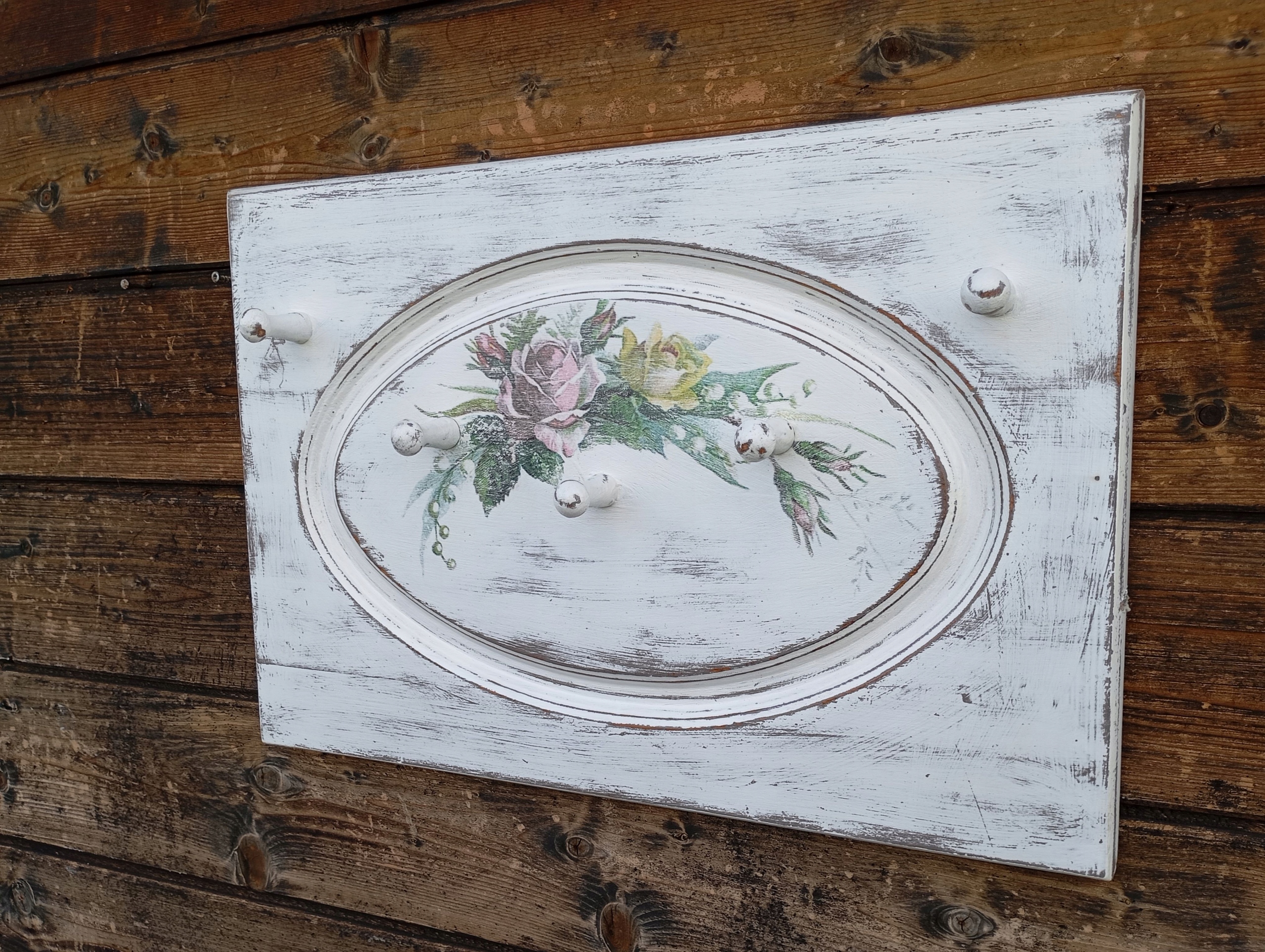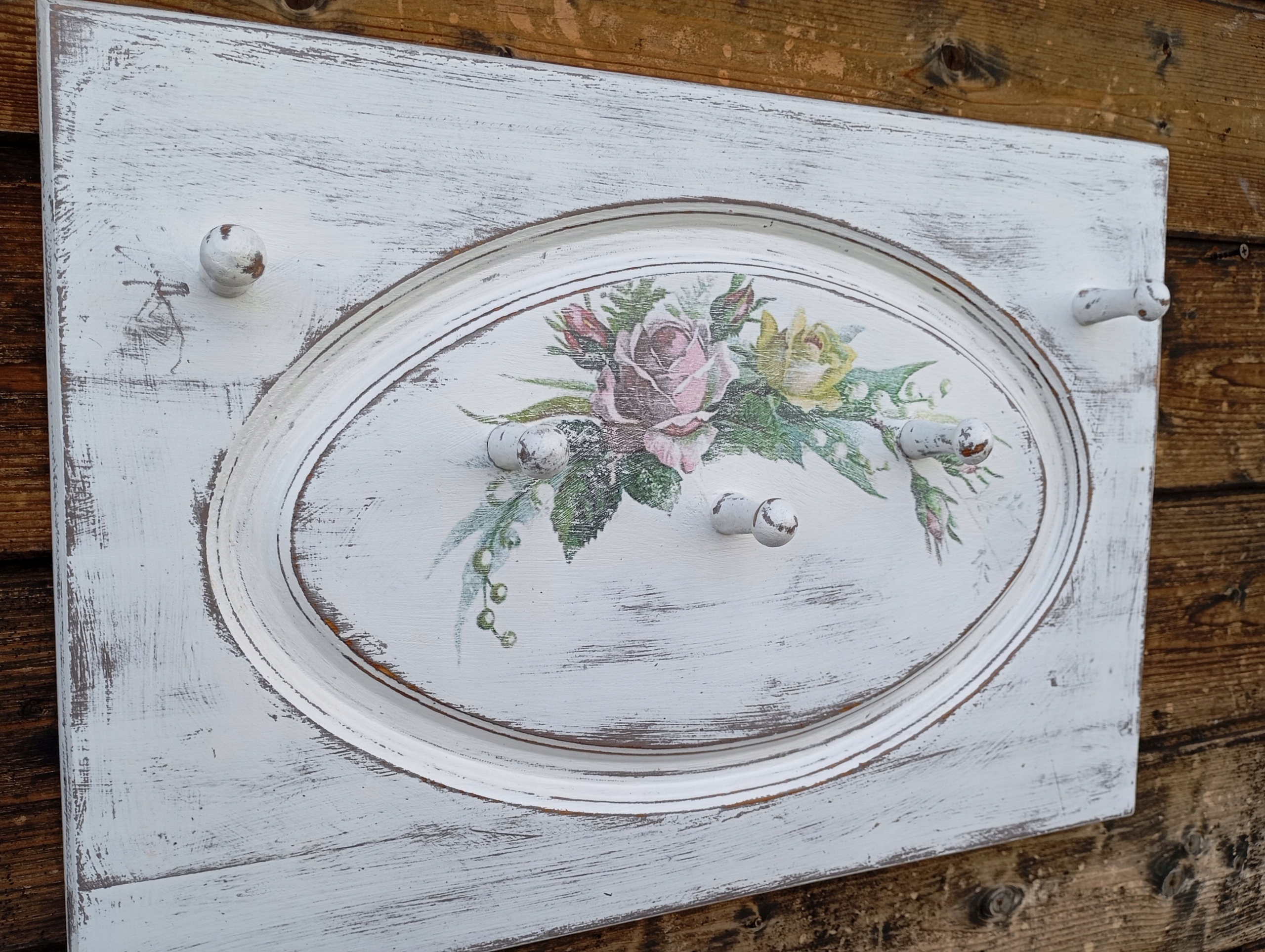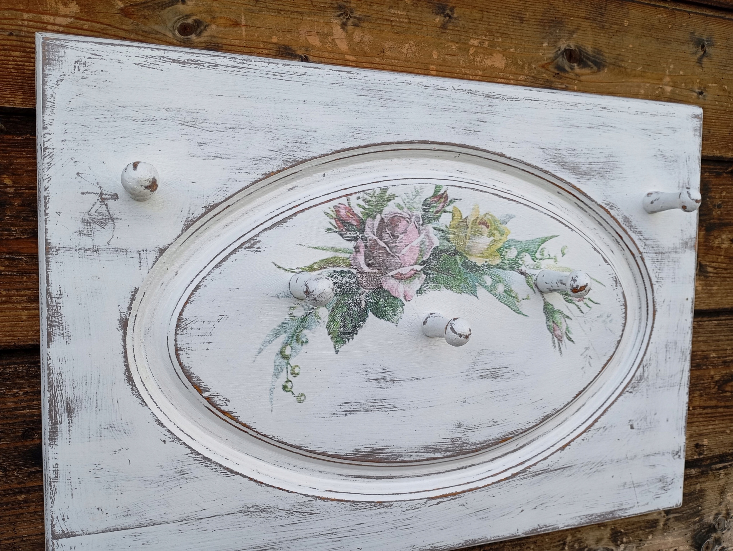 DREWNIANY MALOWANY WIESZAK , KWIATY , SHABBY CHIC