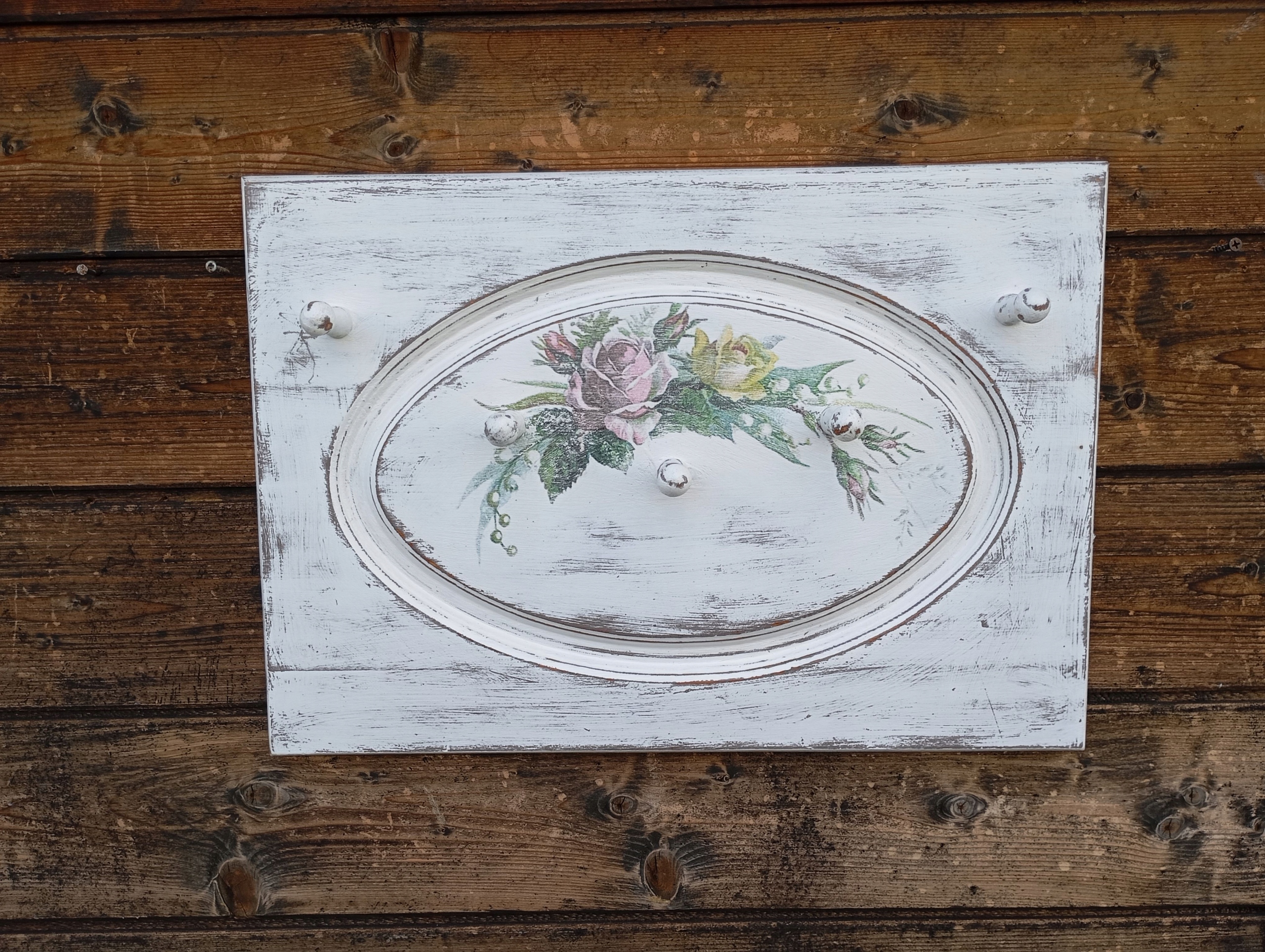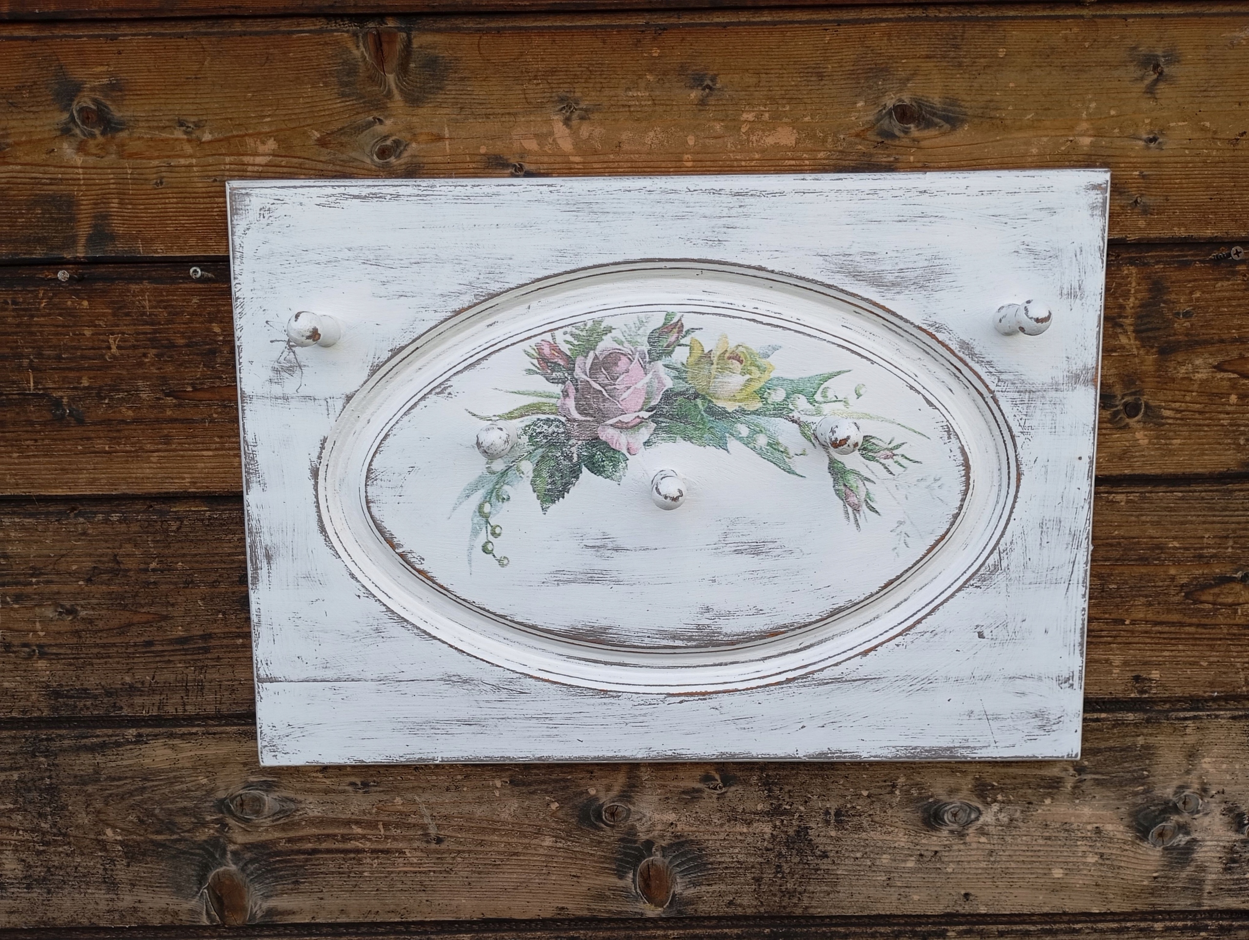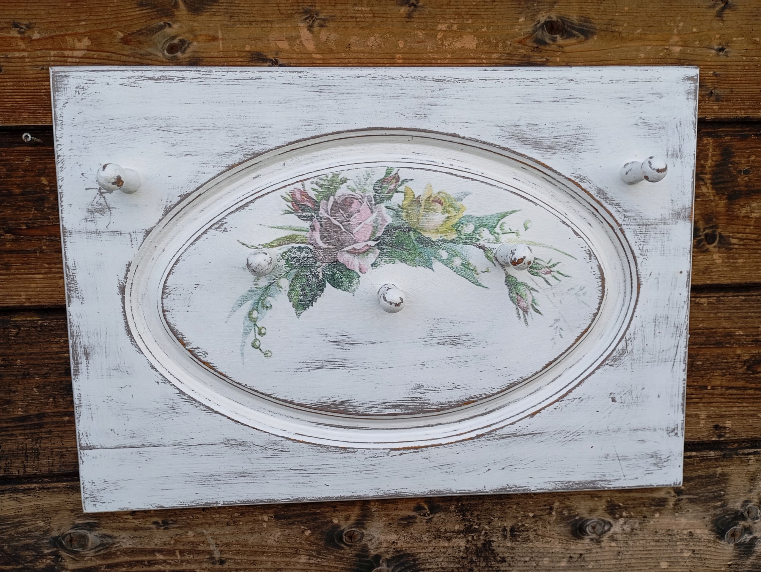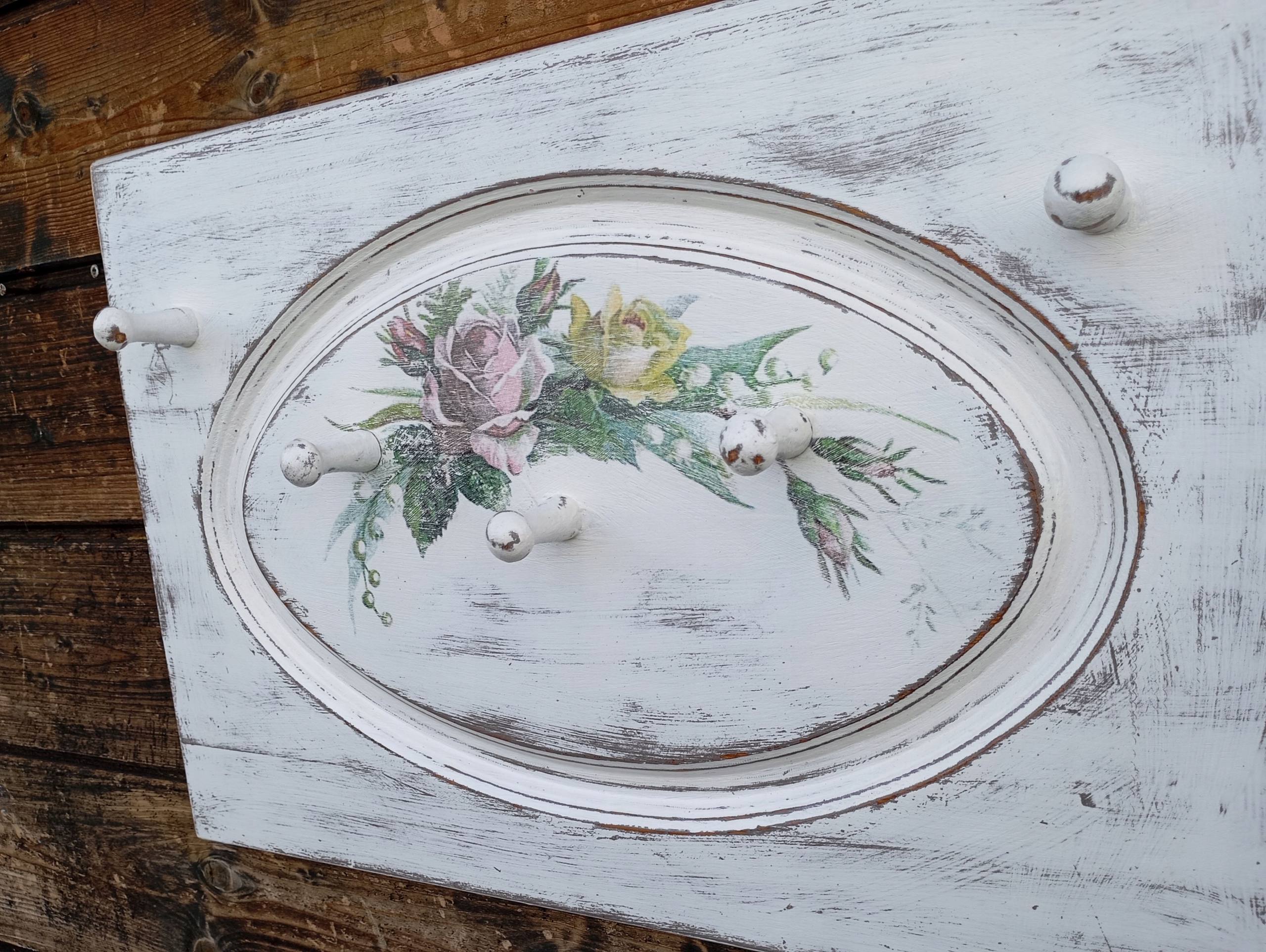 DREWNIANY MALOWANY WIESZAK , KWIATY , SHABBY CHIC