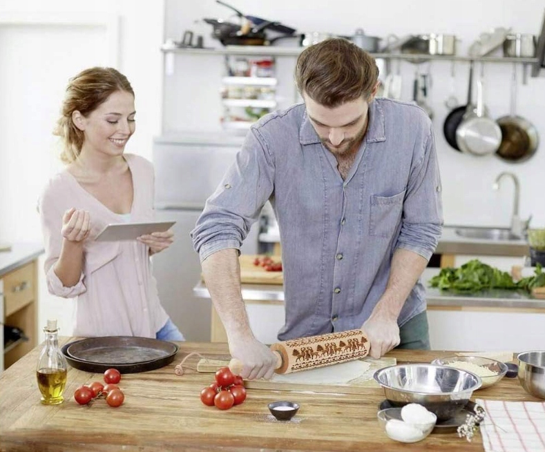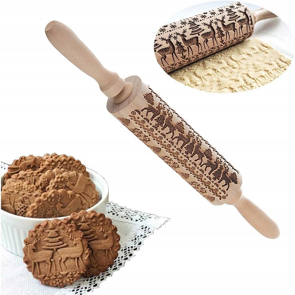 DREWNIANY WAŁEK DO CIASTA ŚWIĄTECZNY WZÓR CIASTKA PIECZENIE BOŻE NARODZENIE