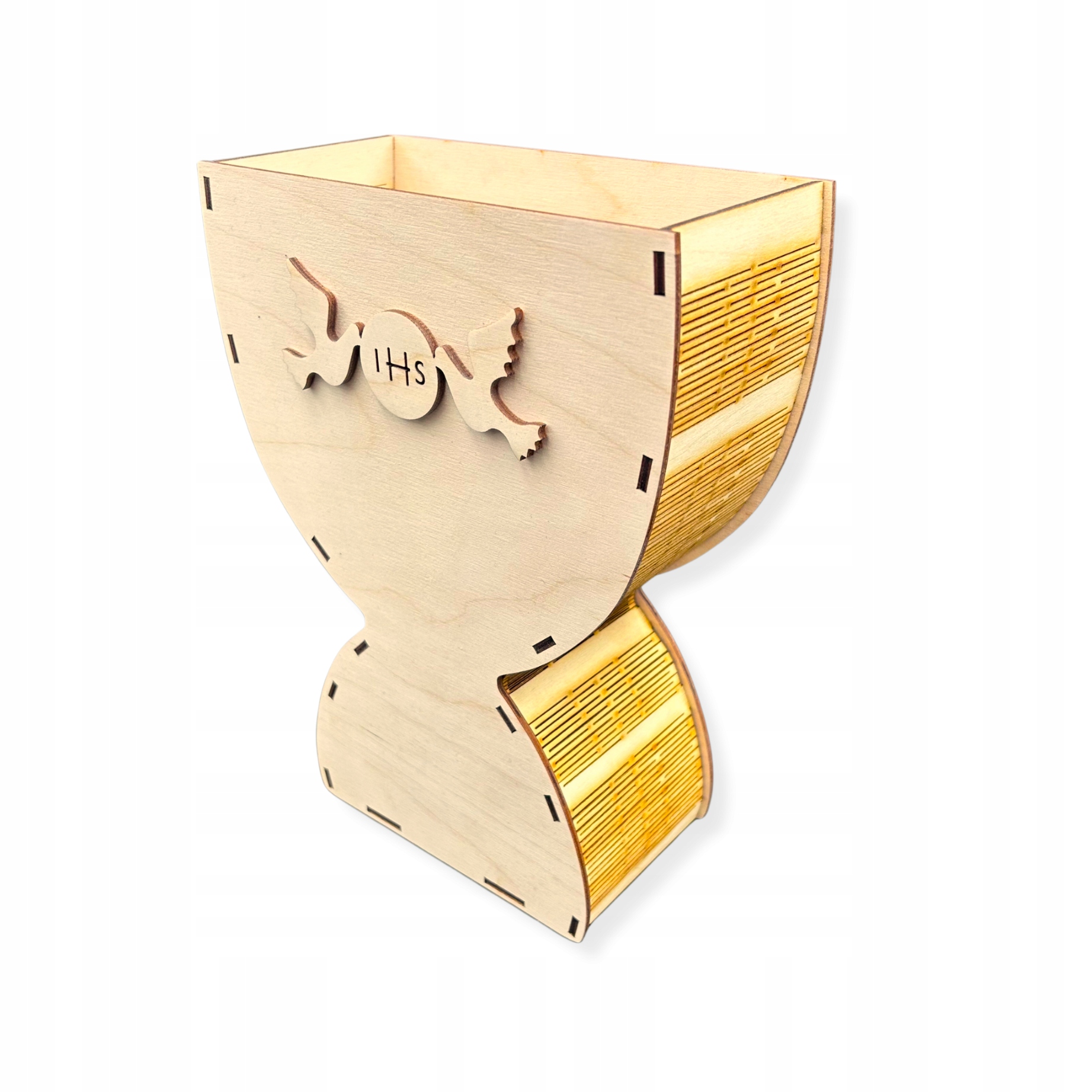 DREWNIANY WAZON KIELICH FLOWERBOX PUCHAR IHS KOMUNIA CHRZEST PREZENT 25CM