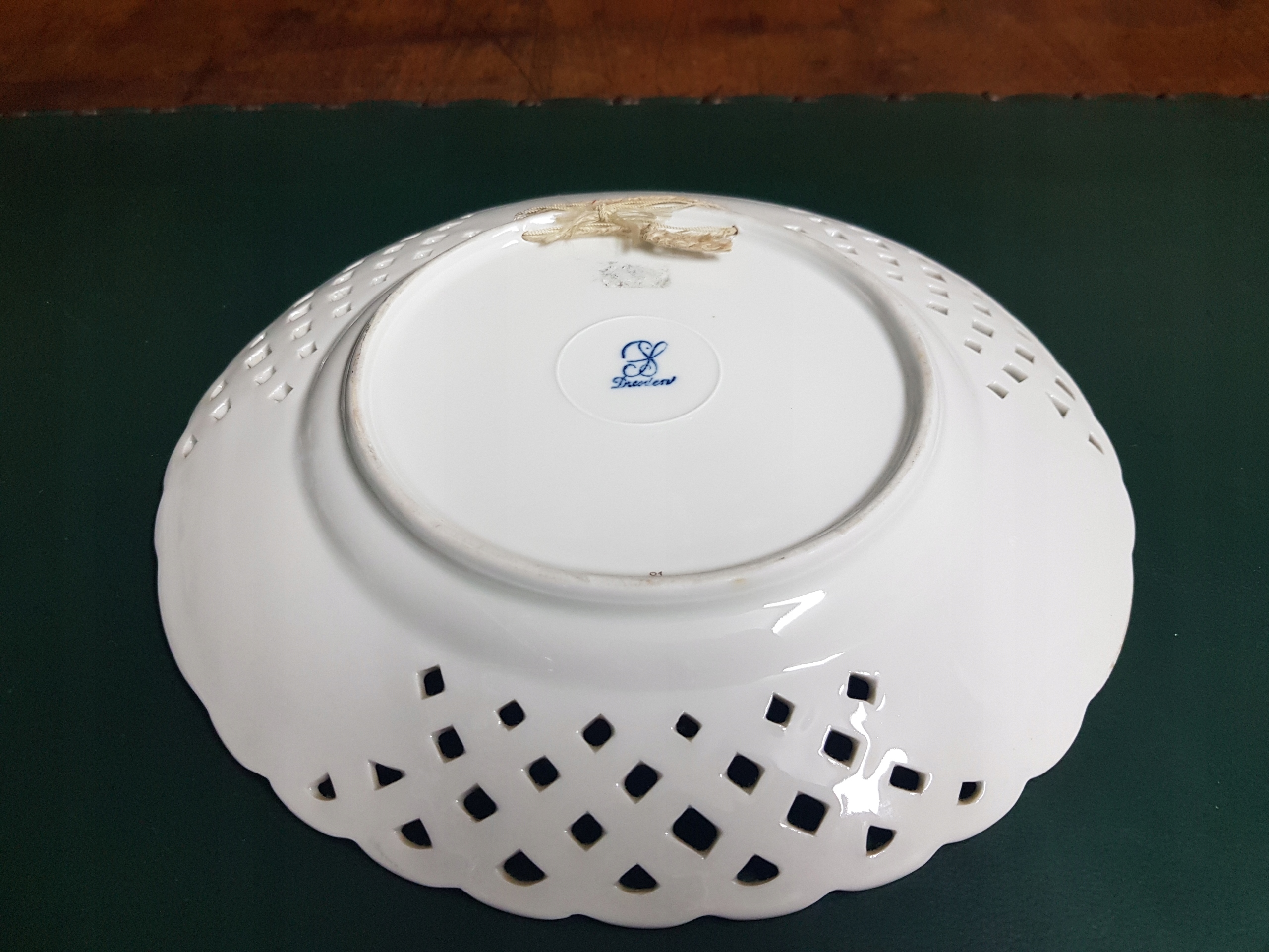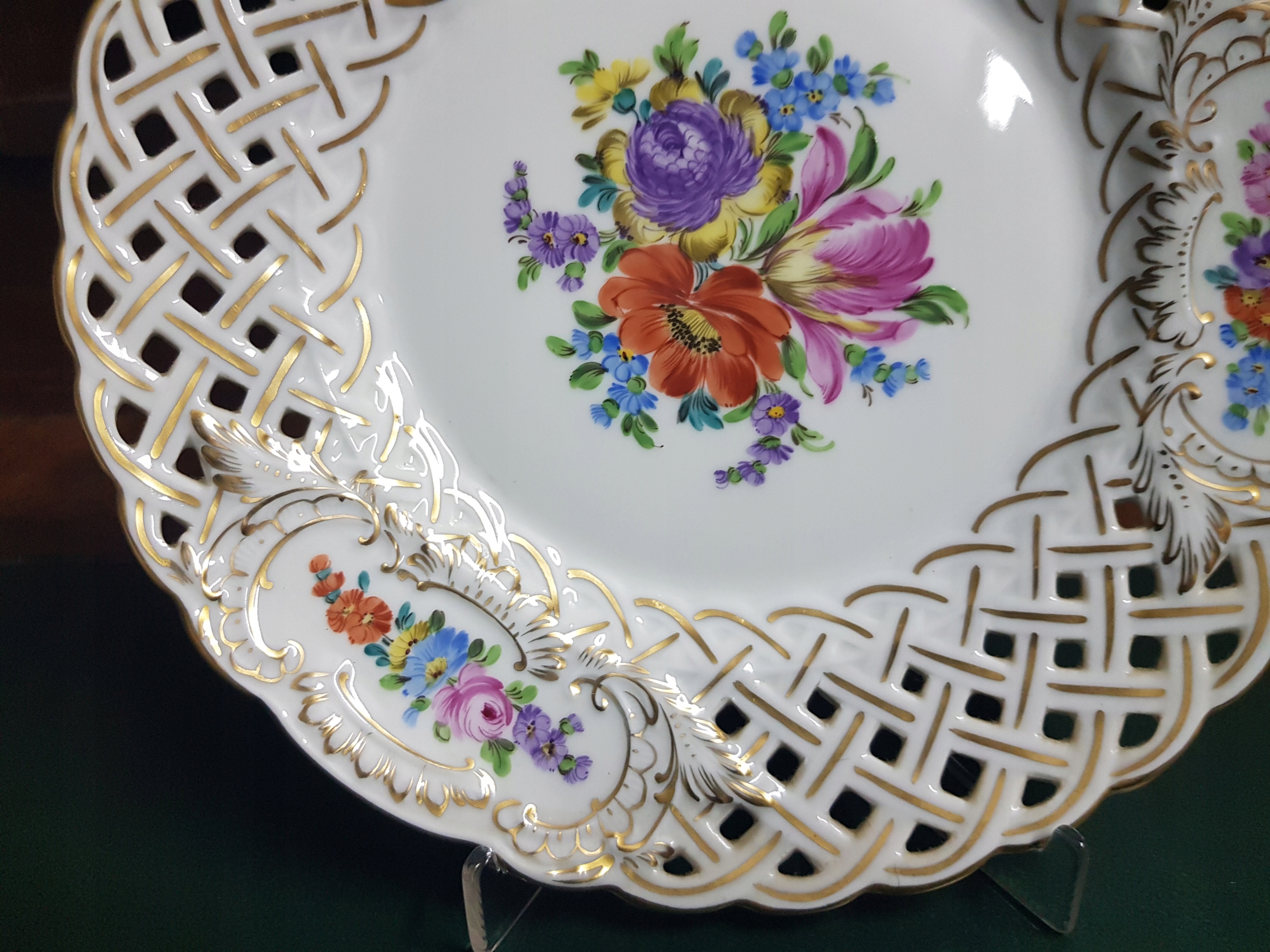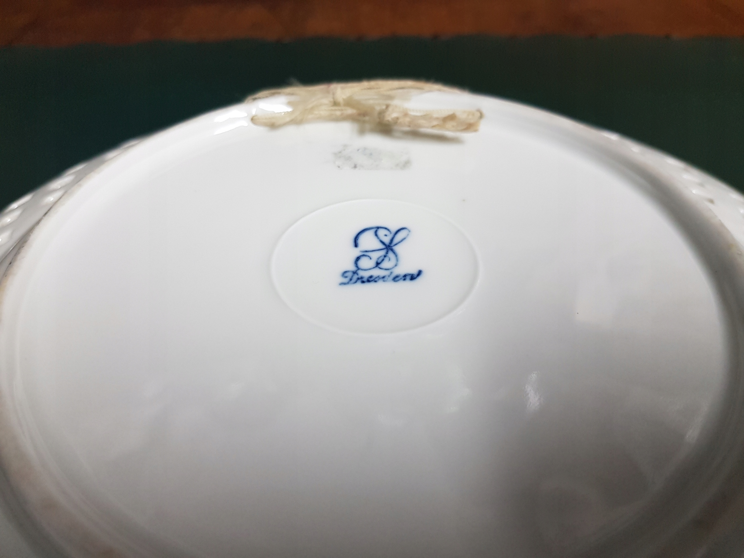 Предмет аукциона - декоративная дрезденская тарелка белого цвета.Позолоченные края.Позолоченный ажур.Тарелка для подвешивания.