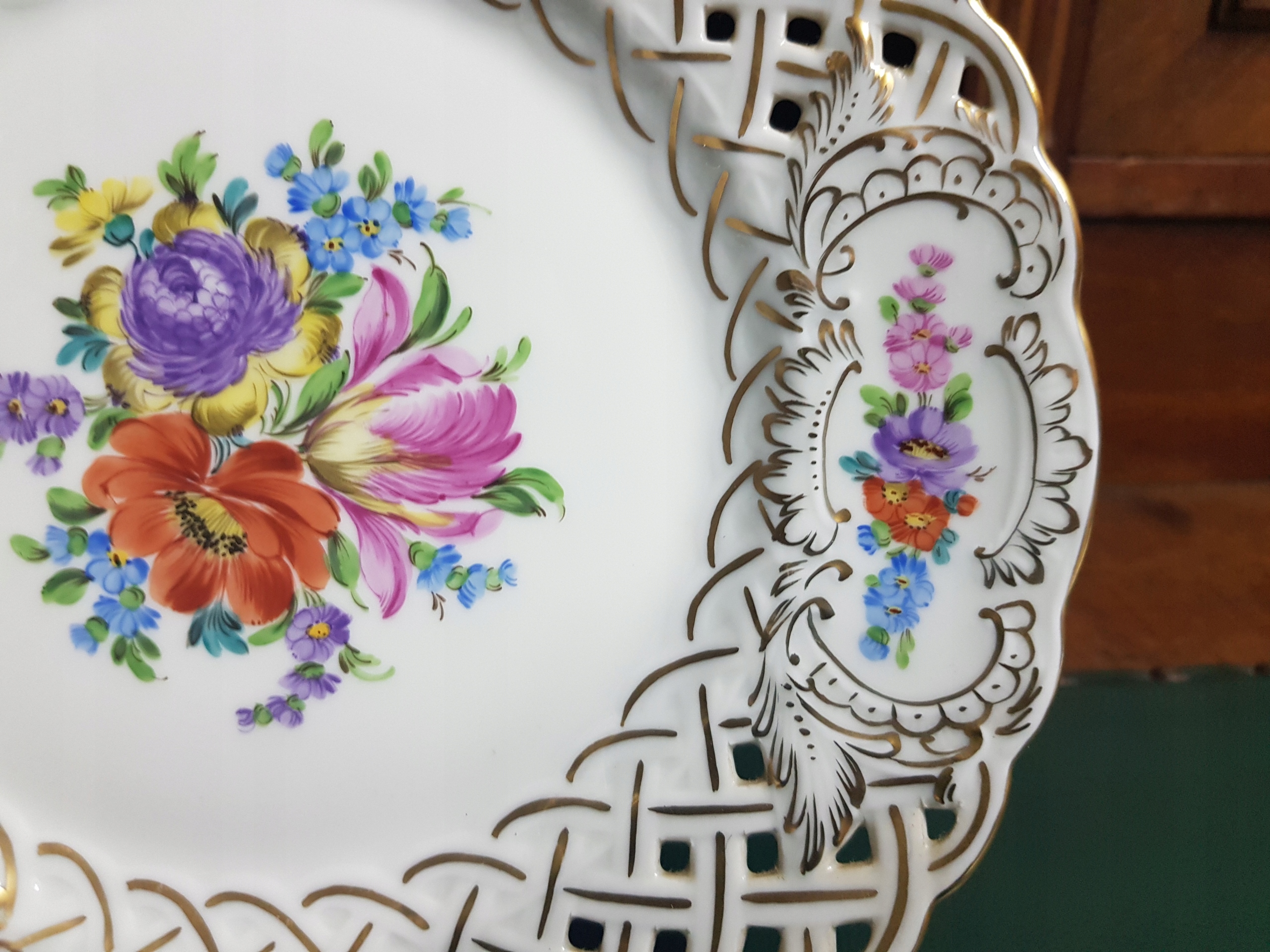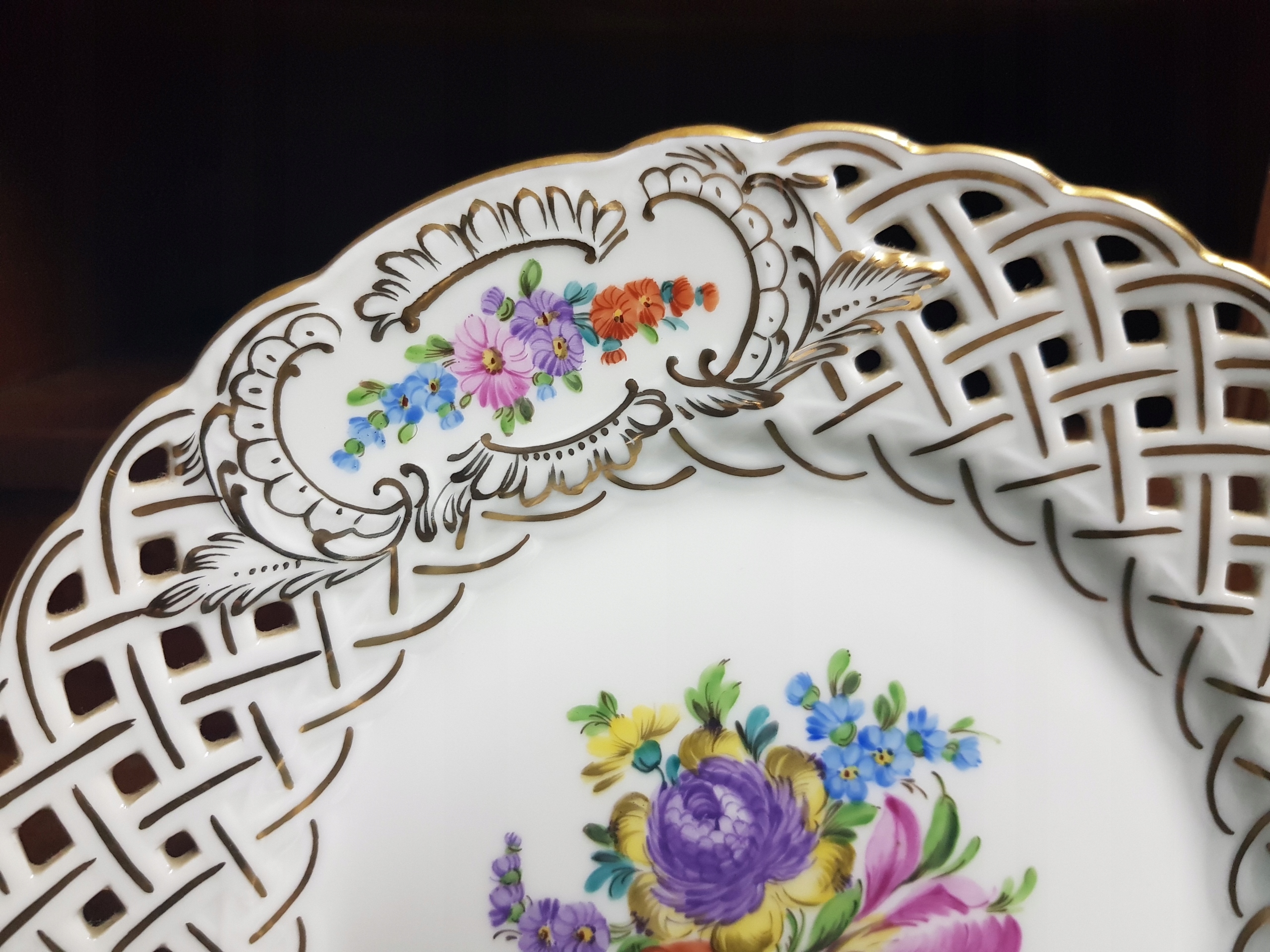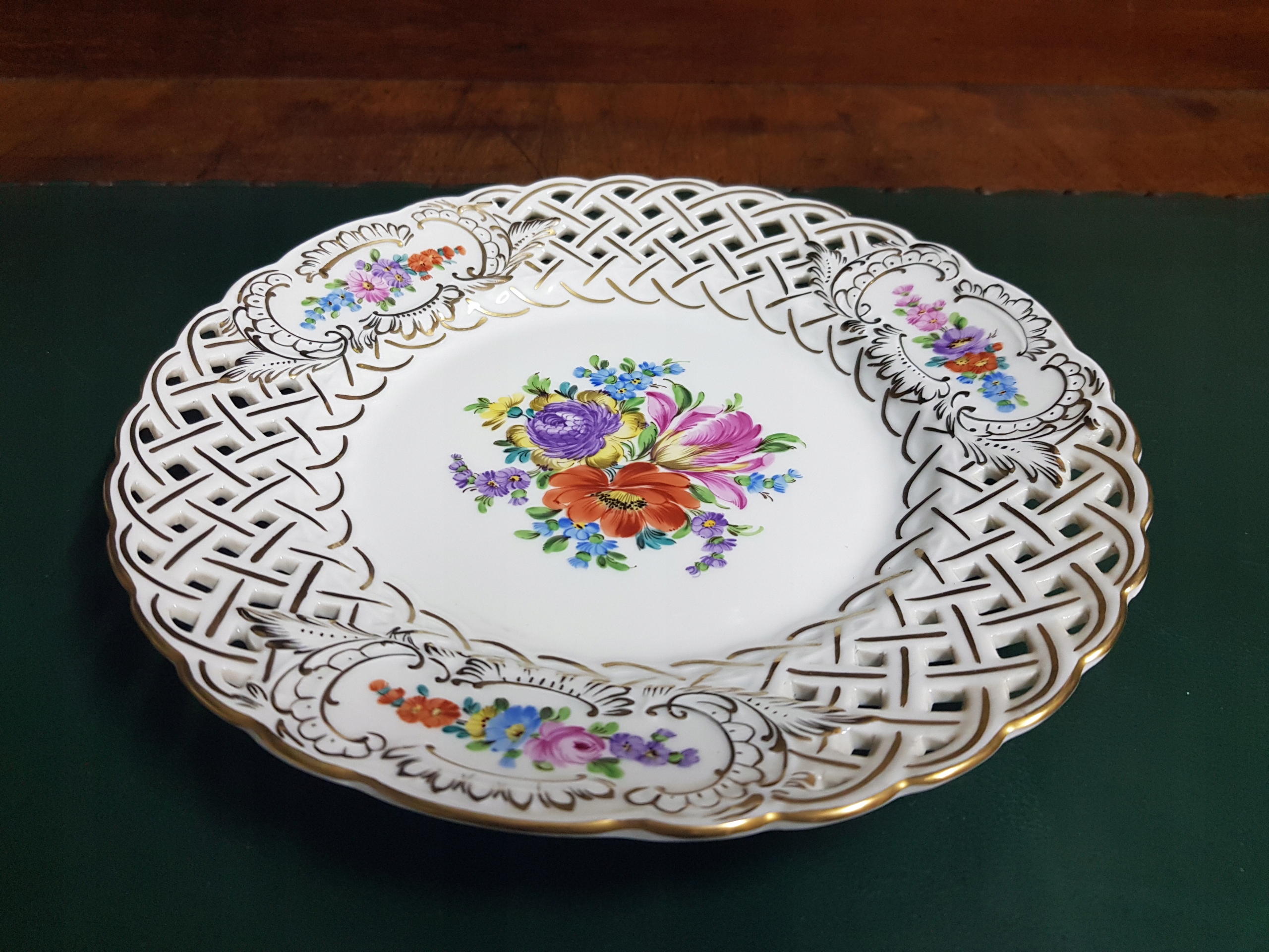 Предмет аукциона - декоративная дрезденская тарелка белого цвета.Позолоченные края.Позолоченный ажур.Тарелка для подвешивания.