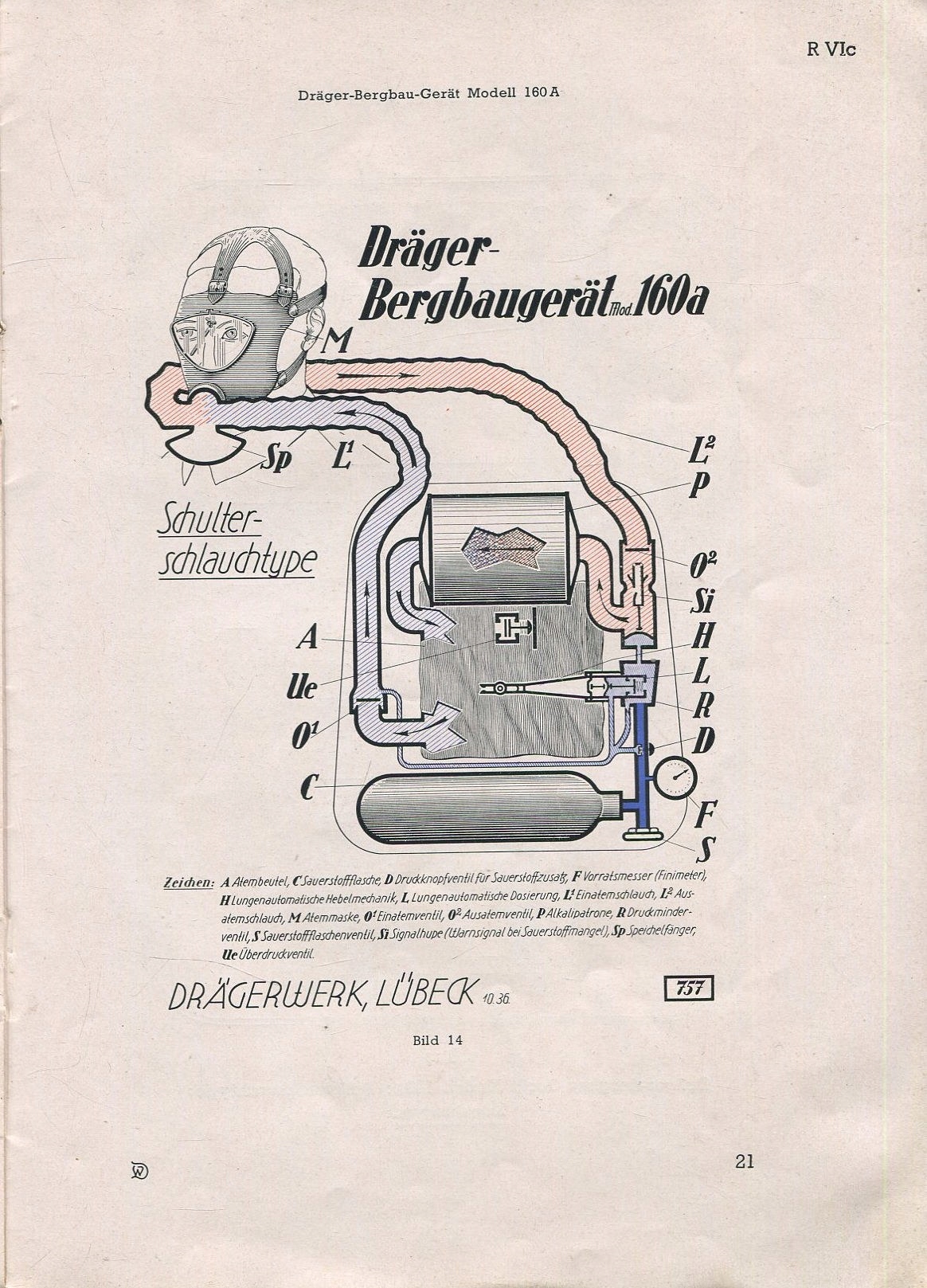 Формат 15x21 см, с. 34, Черно -белые фотографии в тексте, мягкая обложка. Представление оборудования для защиты дыхания (антиоксидные маски, кислородные аппараты), производимого известной немецкой компанией Drägerwerk в Любесе. Содержание на немецком языке.
