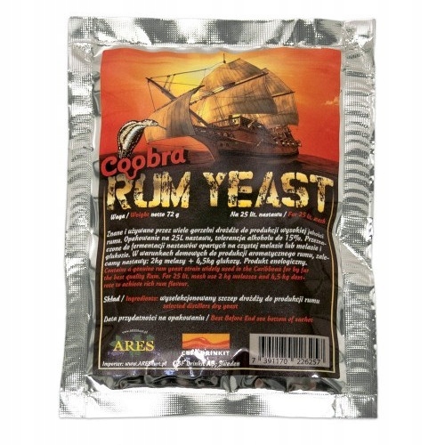 Дистилляционные дрожжи Coobra RUM ДРОЖЖИCoobra Rum — это дистиллерские дрожжи для ферментации патоки в ром. Дрожжи предназначены для сбраживания смесей патоки и тростникового сахара, а также смесей патоки и глюкозы. Если для приготовления смеси мы планируем использовать тростниковый сахар, убедитесь, что это нерафинированный тростниковый сахар.