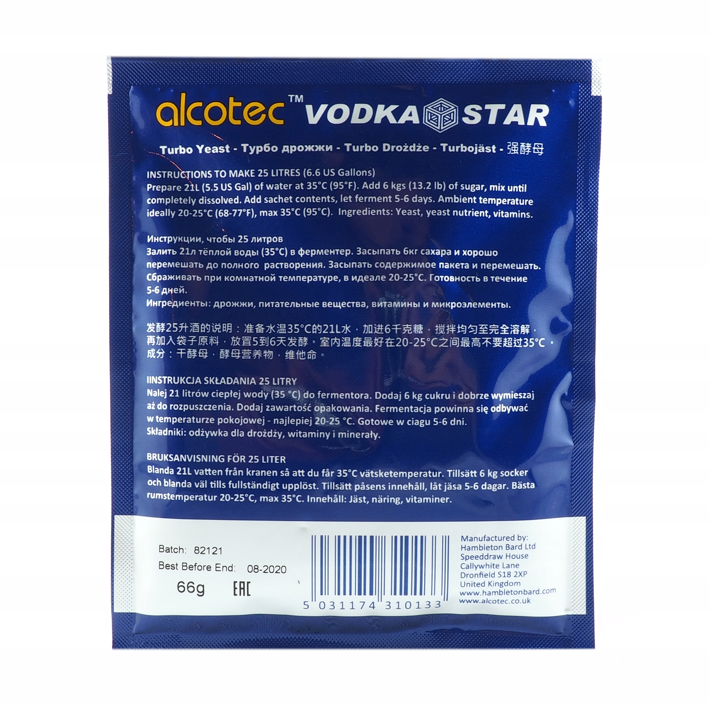 представляет собой смесь специально отобранных спиртовых дрожжей, питательных веществ для дрожжей, витаминов и микроэлементов, предназначенную для быстрого брожения сахарных смесей. Использование специального вида дрожжей снижает количество нежелательных продуктов брожения.