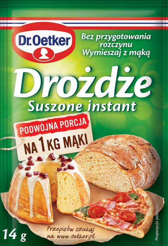 DR OETKER Сухие дрожжи моментального действия – продукт, который поможет вам испечь вкусный домашний хлеб. Использование сухих дрожжей высочайшего качества сразу гарантирует быстрый подъем теста и идеальную ровность структуры выпечки. Это делает приготовление хлеба простым и эффективным. Сухие быстродействующие дрожжи DR OETKER выпускаются в удобной порции по 14 грамм, которой хватает на одну выпечку. Этот продукт создан для требовательных покупателей, ценящих удобство и вкус выпечки. Мы рекомендуем быстрорастворимые сухие дрожжи DR OETKER всем, кто хочет приготовить замечательный свежий хлеб дома, не тратя много времени на подъем теста.