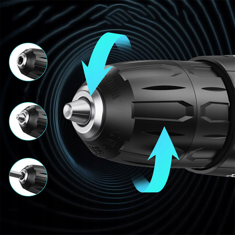 Практическая отделка: самоблокирующийся сверлильный патрон 10 мм (3/8 дюйма) облегчает быструю смену сверл, прорезиненная ручка повышает удобство захвата, а встроенный светодиод освещает рабочую зону.