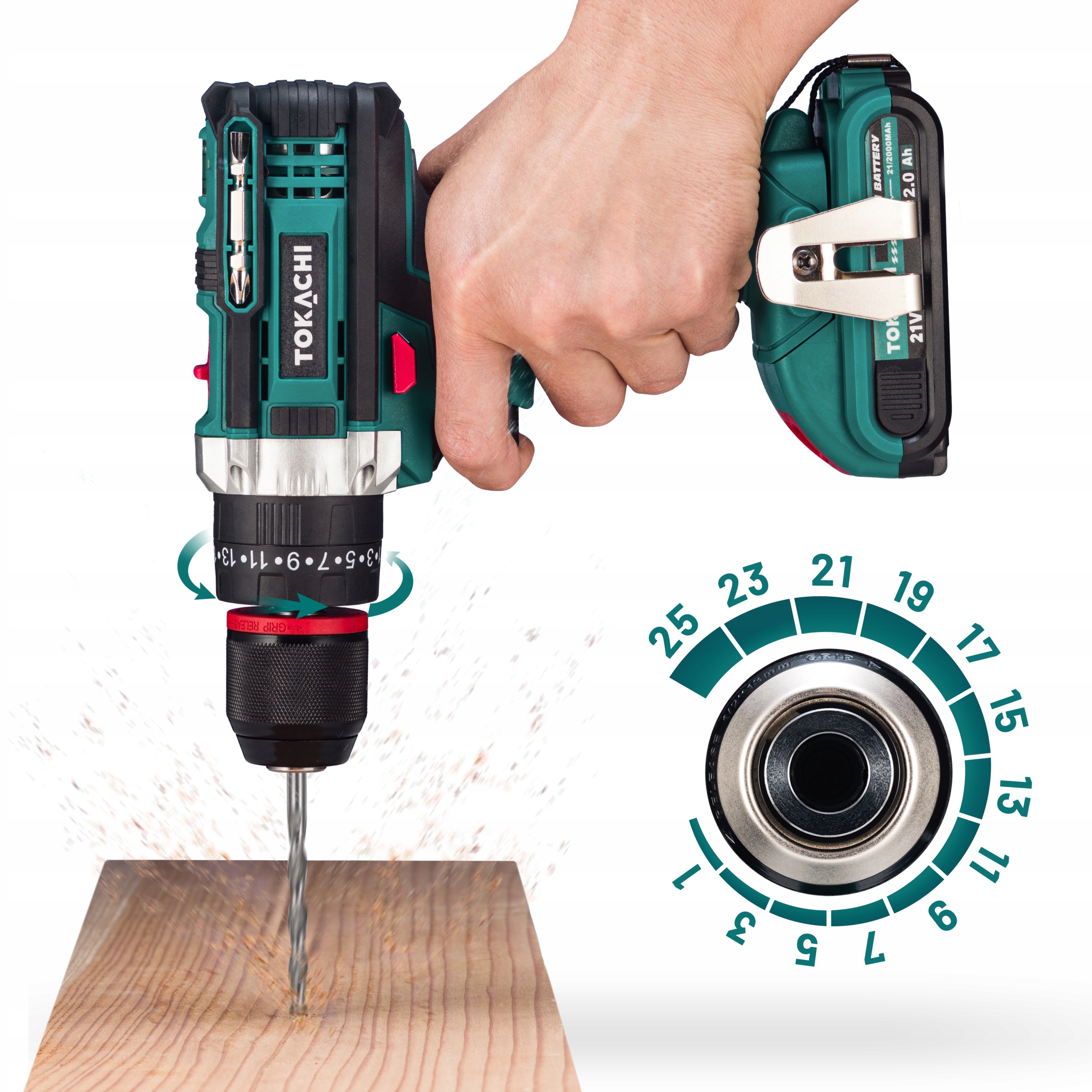 Drill без тренировки b> | металлическая головка | 3 режимы эксплуатации 2 батареи 2AH 21V | Большой набор аксессуаров 2 запуска 25-градусные сцепление | Ускорение до 1700 об/мин | Светодиодное хранилище для 2 бит встроено -в либелле ремень запуска запуска запуска запуска