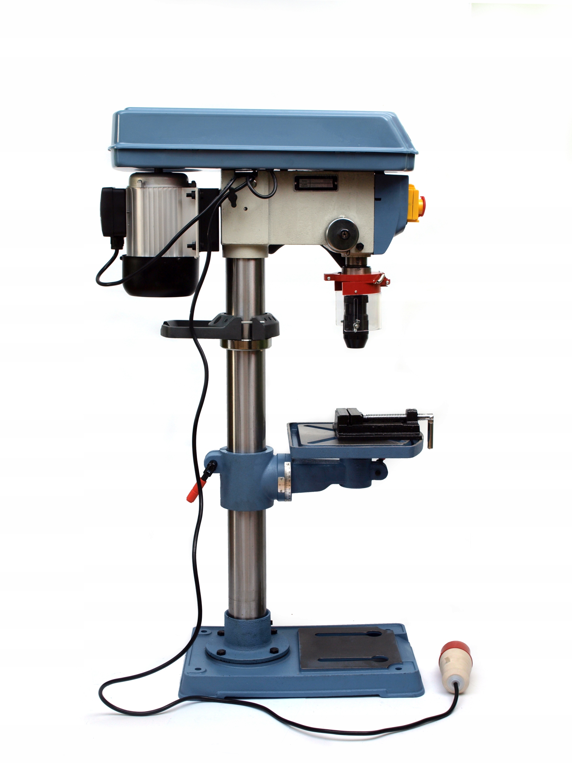 Дрель оснащена возможностью регулировки глубины сверления, плавной регулировкой высоты столешницы, защитой выключателя, защитой от случайного открытия крышки и автоматическим выключателем защиты от перегрузки.
