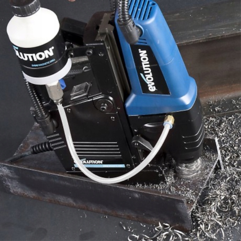 - Дрель с магнитным основанием EVO42 позволяет проделывать отверстия диаметром до 42 мм с помощью трепанирующих сверл.