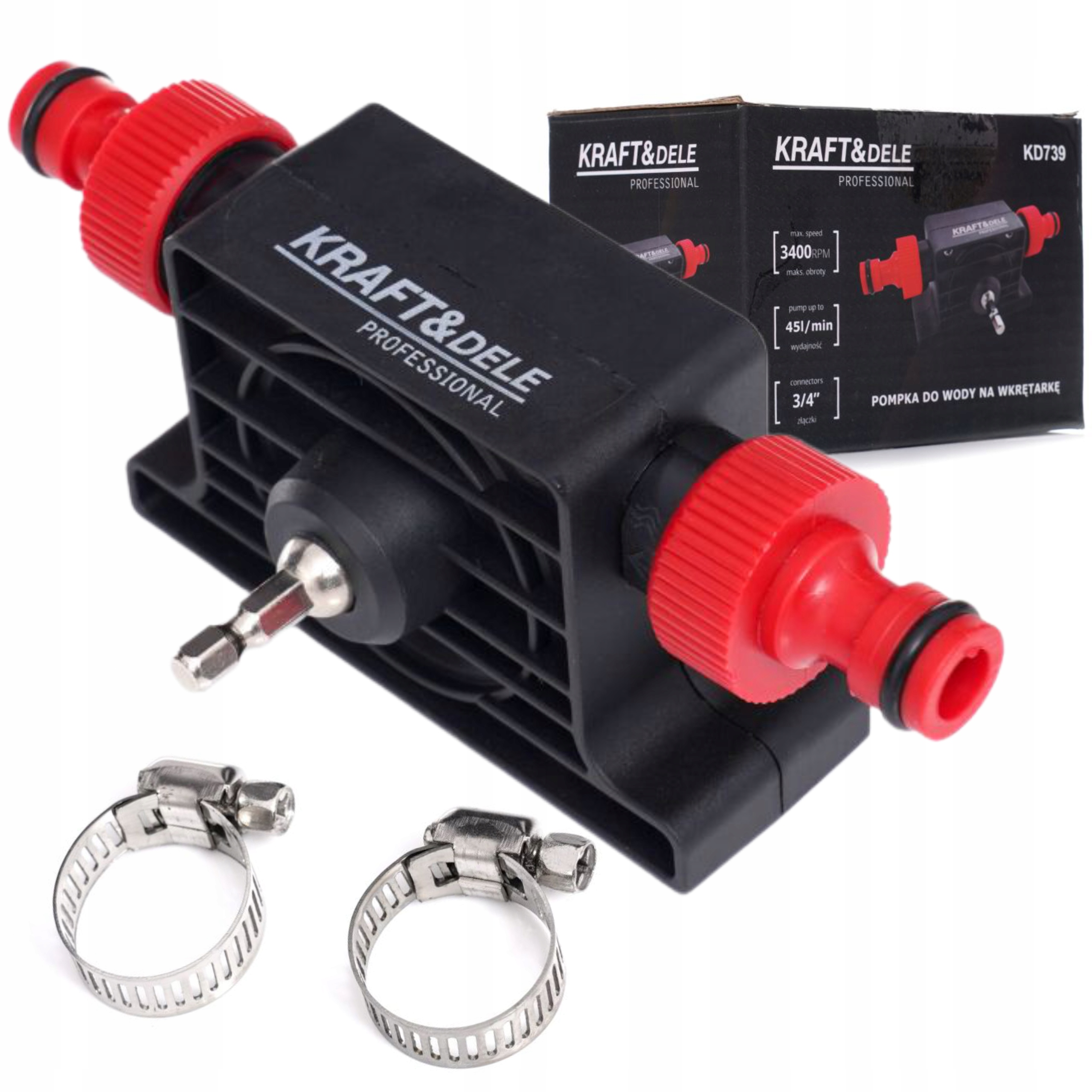 Практичный жидкостный насос для шуруповерта от Kraft&Dele изготовлен из высококачественного пластика. Вы можете легко перекачивать воду, топливо, масло или другие жидкости. Приводной вал помещается в зажим любой отвертки.