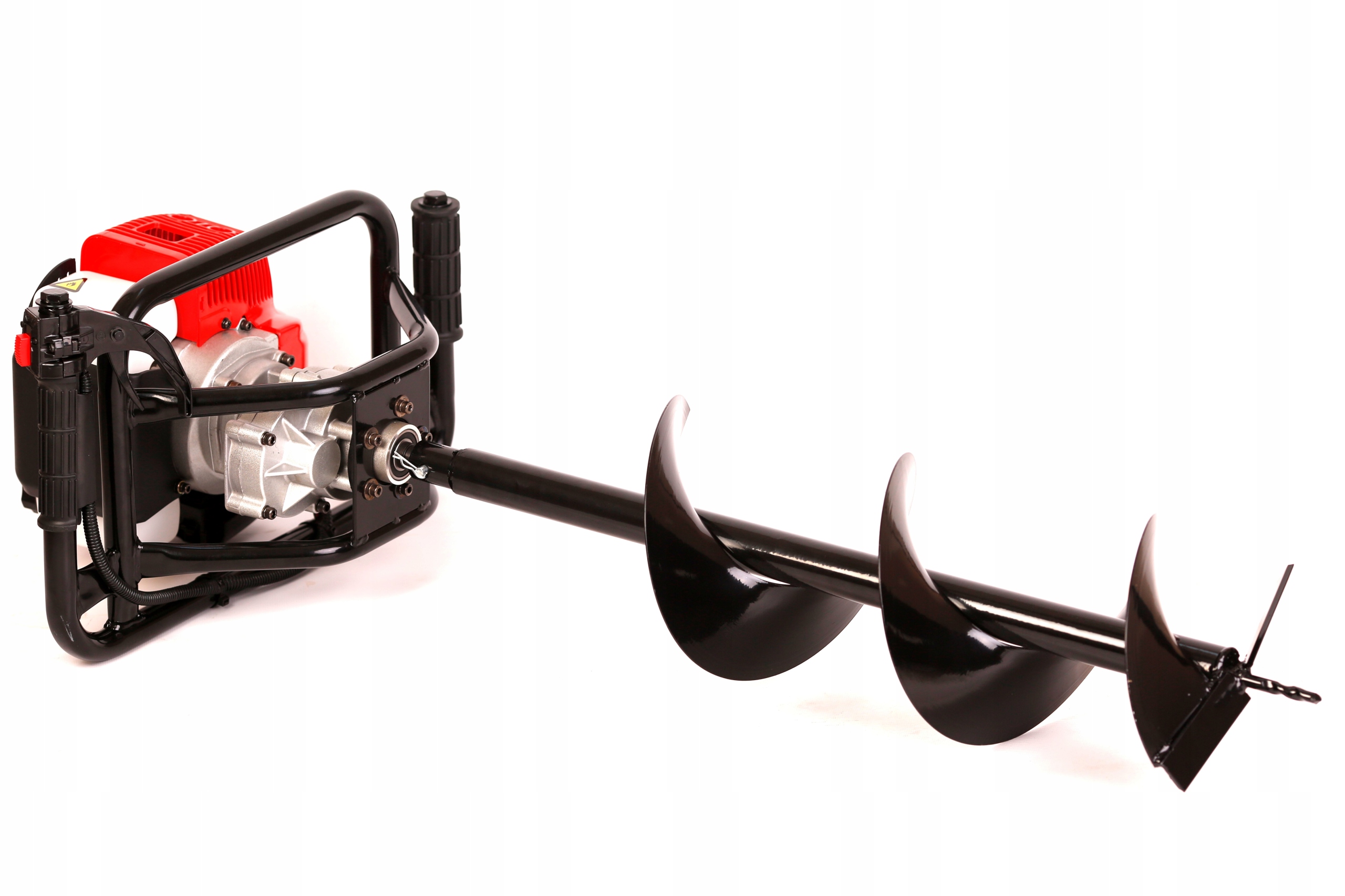 Удобные прорезиненные ручки обеспечивают стабильную работу устройства. Буровая установка отличается надежным качеством изготовления и прочными конструктивными элементами. Шнек имеет предохранительный выключатель. Благодаря сравнительно небольшому весу устройства маневрировать легче и менее требовательно.