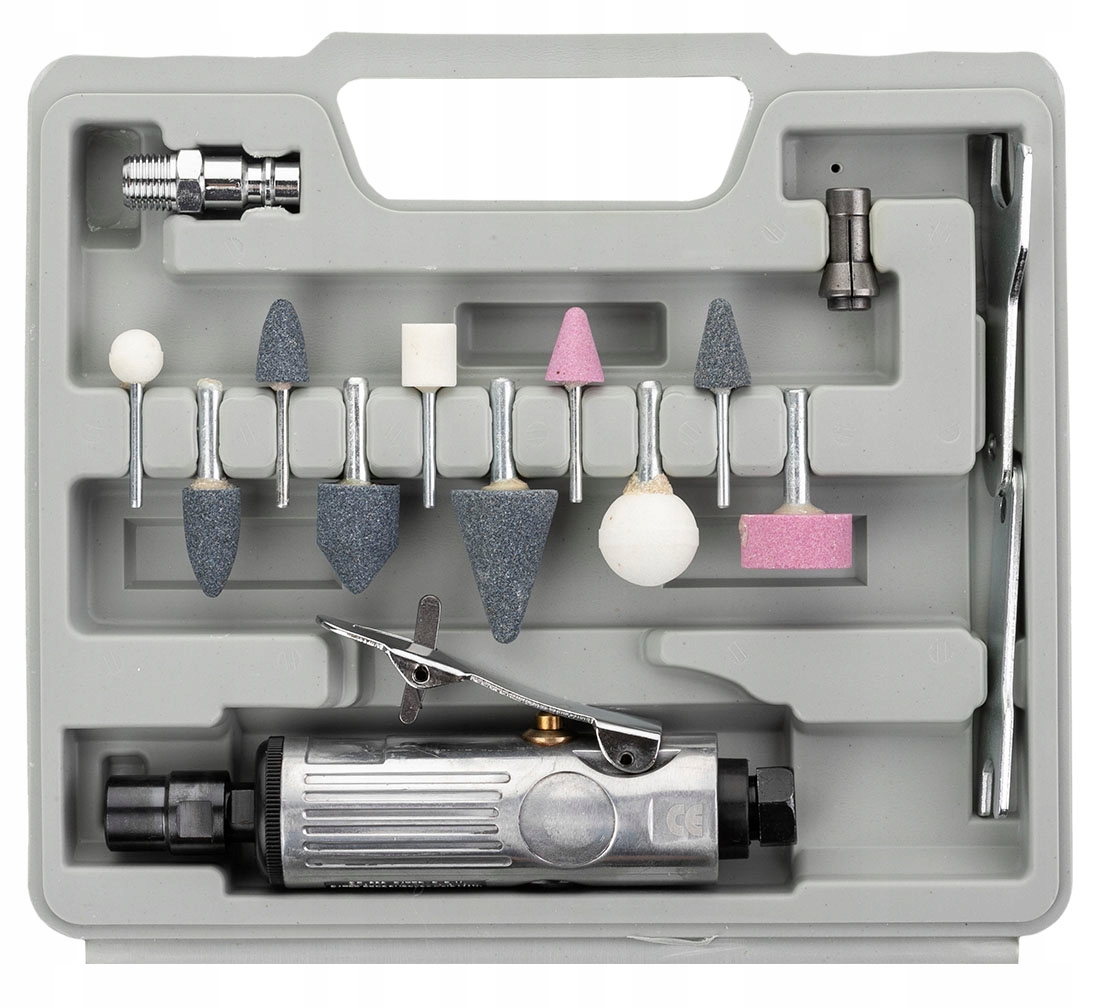 Шлифовальный набор с пневматической дрелью, специально подготовленный для людей, которые хотят представить предложение по ремонту шин в своей шиномонтажной мастерской. Благодаря удобному футляру набор всегда под рукой и готов к использованию.