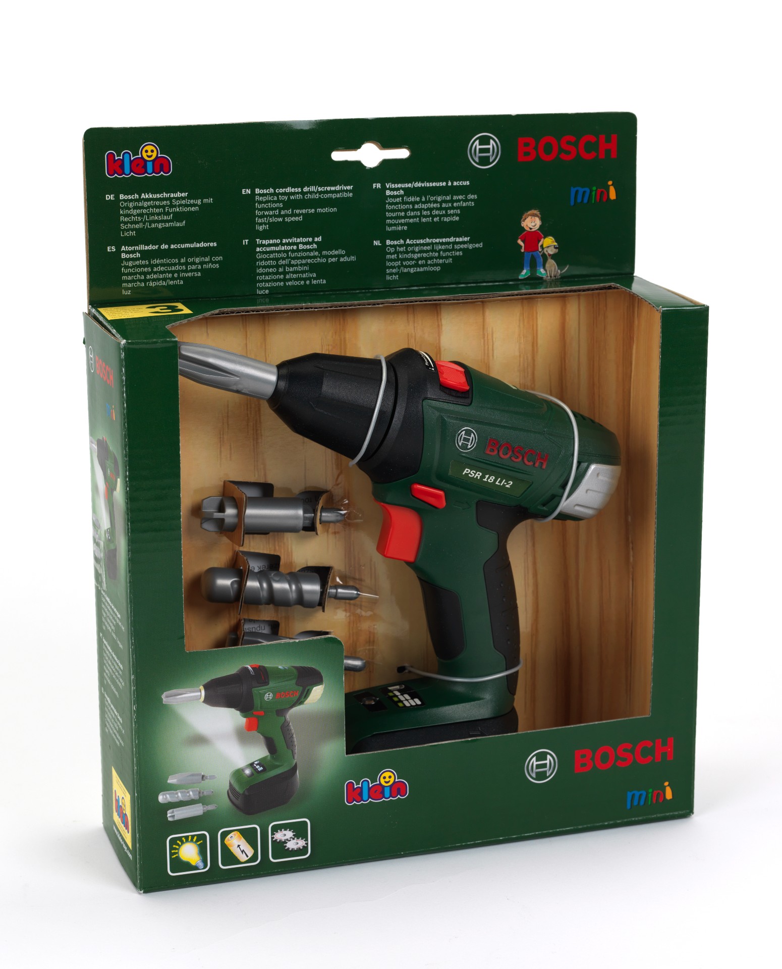 Игрушечная дрель-шуруповерт Bosch II создана уважаемой компанией Klein, которая для детей, любящих играть роль взрослых, разрабатывает высококачественные игрушки, имитирующие бытовую технику, инструменты, косметику и т. д. Она заключила контракты со многими брендами, такими как Bosch, Braun, Miele и Vileda, благодаря чему игрушки выглядят как настоящая продукция этих компаний.