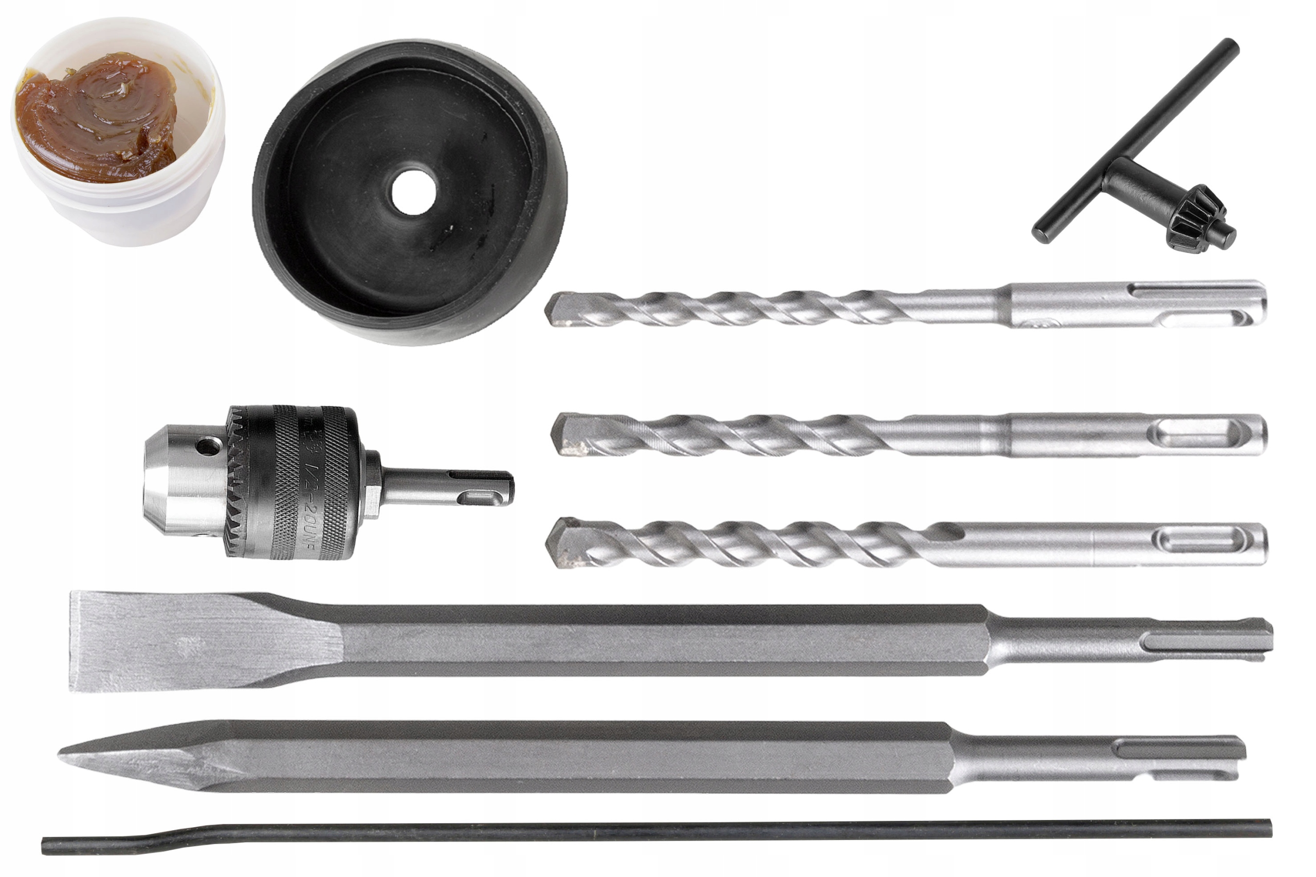 В комплект входит прочный цельнометаллический переходник от SDS+ к сверлильной головке!