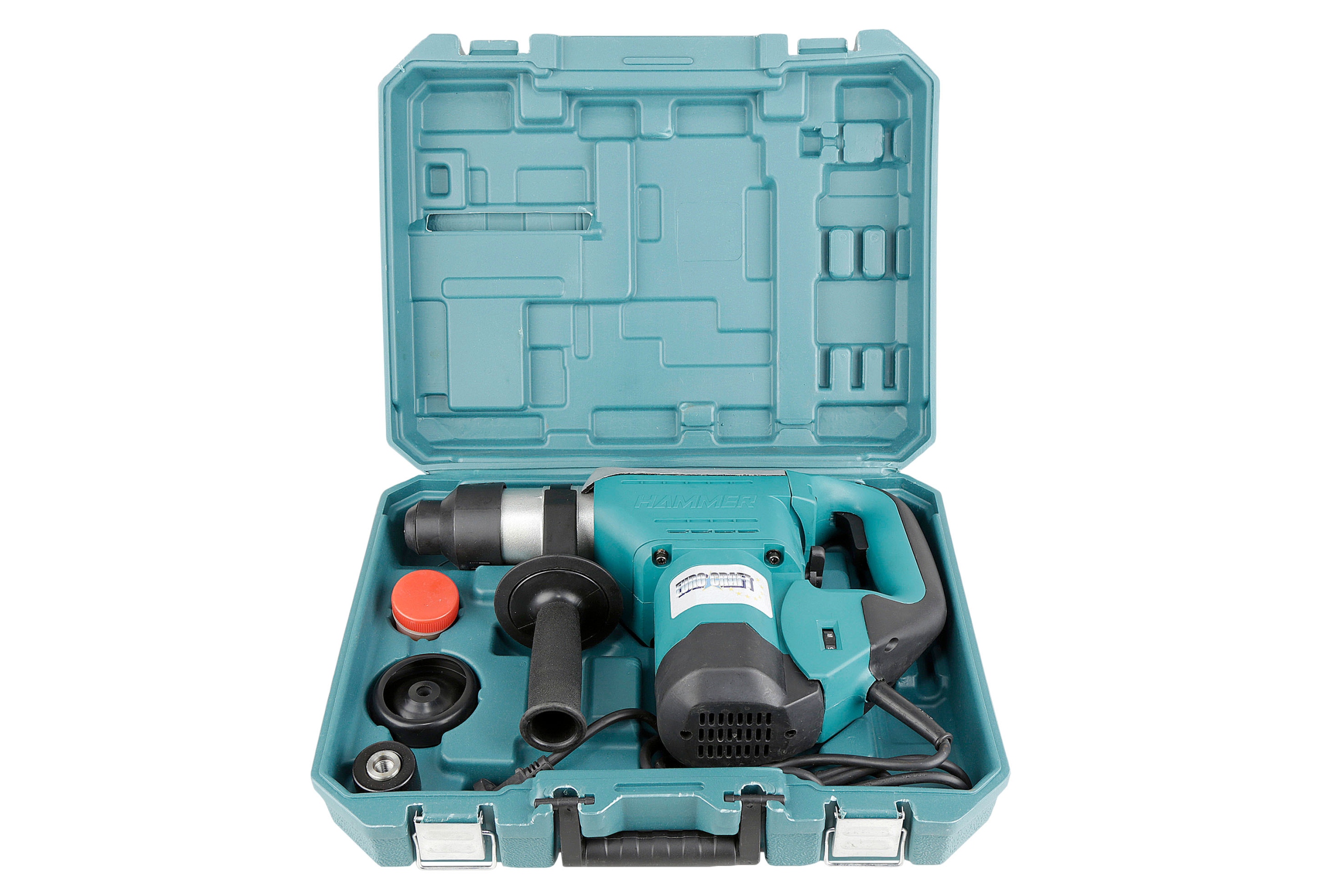Молот имеет дополнительную рукоятку с возможностью регулировки на 360°, что делает работу удобной и точной. В дополнительной ручке имеется место для входящего в комплект ограничителя глубины, благодаря чему мы имеем больший контроль над устройством во время работы. Поставляется все в удобном пластиковом чемоданчике.