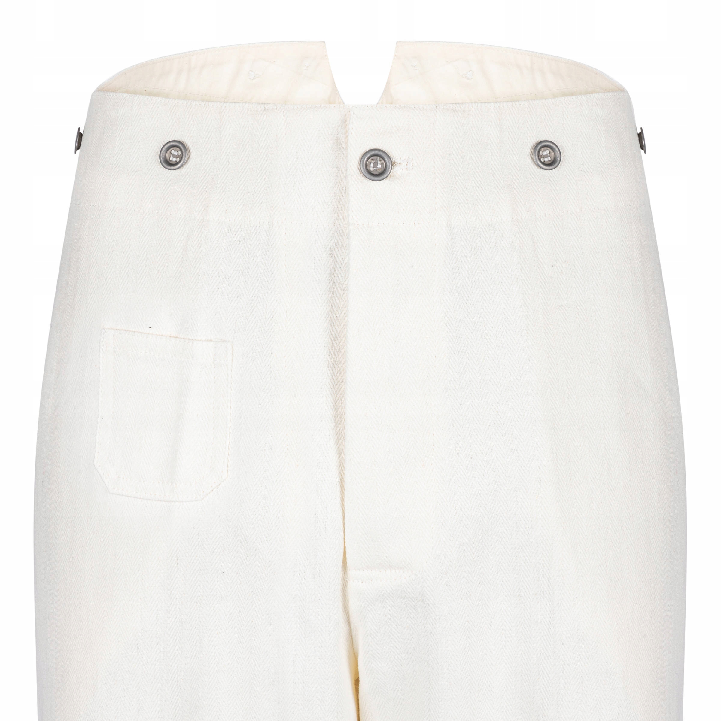 Идеальная копия ранних рабочих брюк Вермахта. Брюки изготовлены из белого хлопкового денима плетения «елочка», идентичного оригиналу. Подробные размеры приведены в таблице ниже. Определенно рекомендуем - по заказу Nestof®!