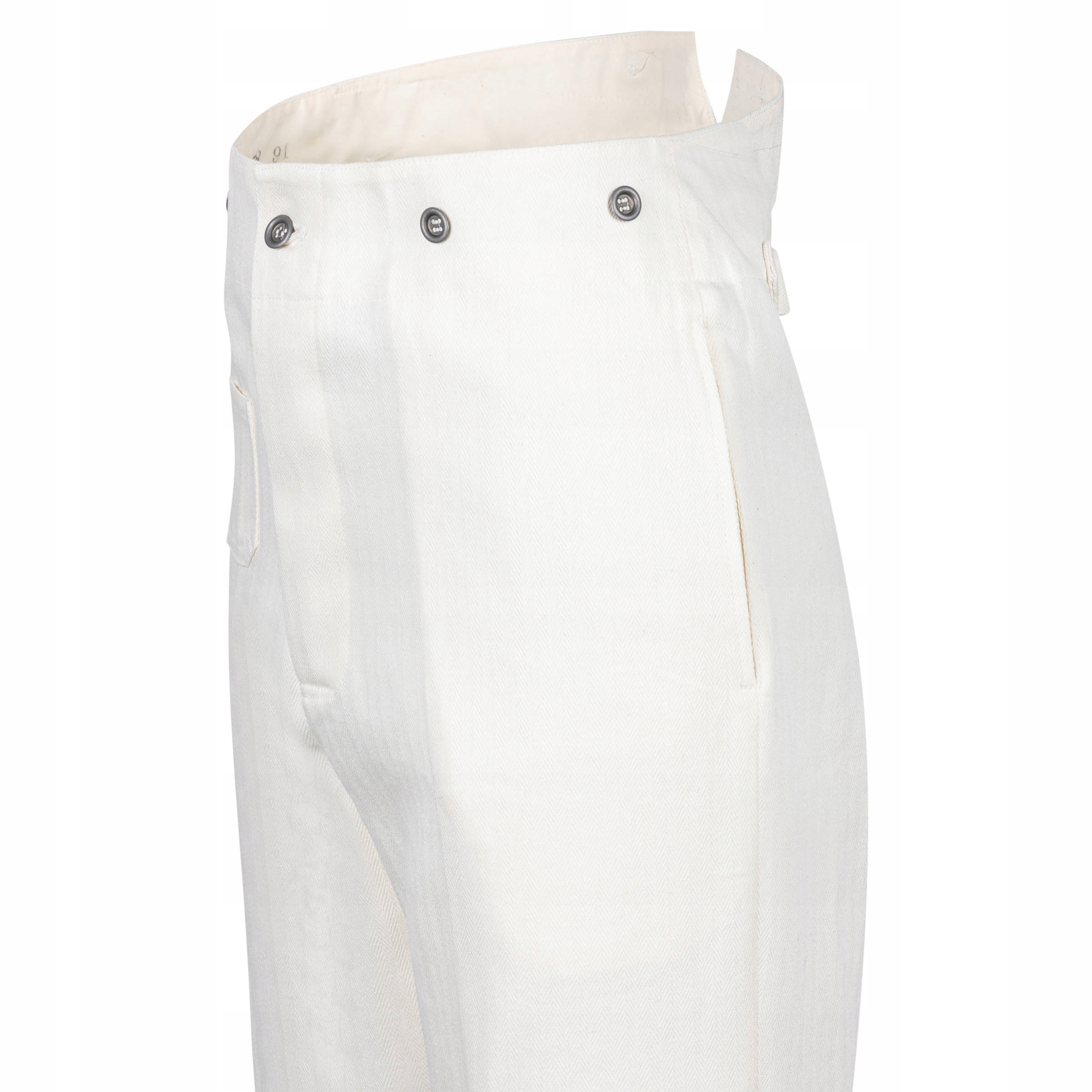 Идеальная копия ранних рабочих брюк Вермахта. Брюки изготовлены из белого хлопкового денима плетения «елочка», идентичного оригиналу. Подробные размеры приведены в таблице ниже. Определенно рекомендуем - по заказу Nestof®!