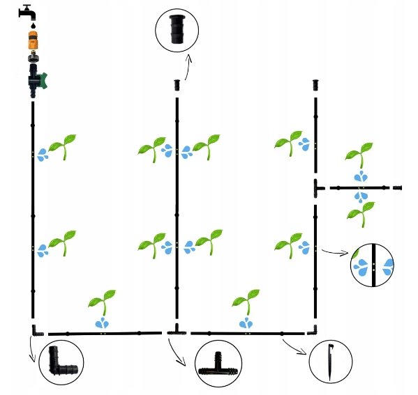 2⃣ Сплошная конструкция с толстой стеной и широким диапазоном давления гарантирует длительное использование , даже при интенсивном использовании. Количество элементов в наборе позволяет легко настроить систему к конкретным потребностям ваших культур.
