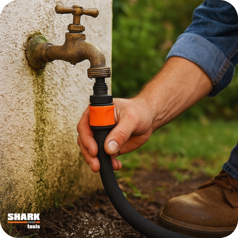 Вам не нужно иметь насос с высоким давлением - эта змея работает при очень низком давлении (от 0,5 до 4 бар). Отлично работает даже с бочкой для дождевой воды, небольшого насоса или гравитационной системы.