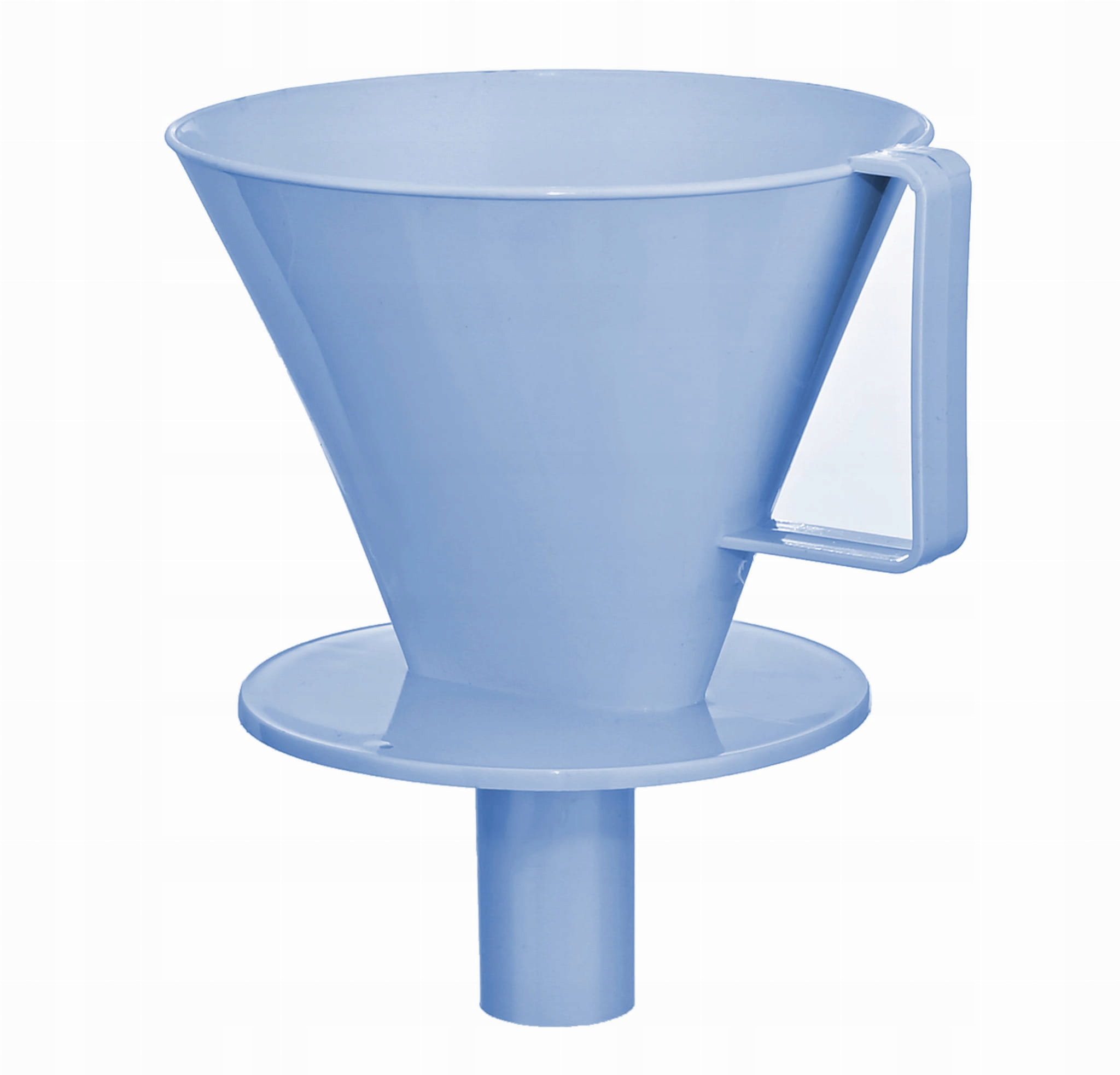 Воронка имеет удлиненное выпускное отверстие для обеспечения устойчивости.