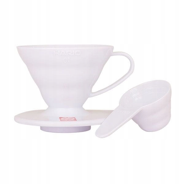 DRIP HARIO V60 01 WHITE PLASTIC – очень простое и удобное устройство для приготовления кофе пуровер. Пластиковый капельник – идеальное решение как дома (он быстро нагревается), так и для всевозможных приключений на выживание. Внутри воронки имеются соответствующие канавки, которые обеспечивают правильную транспортировку воды во время заваривания кофе.