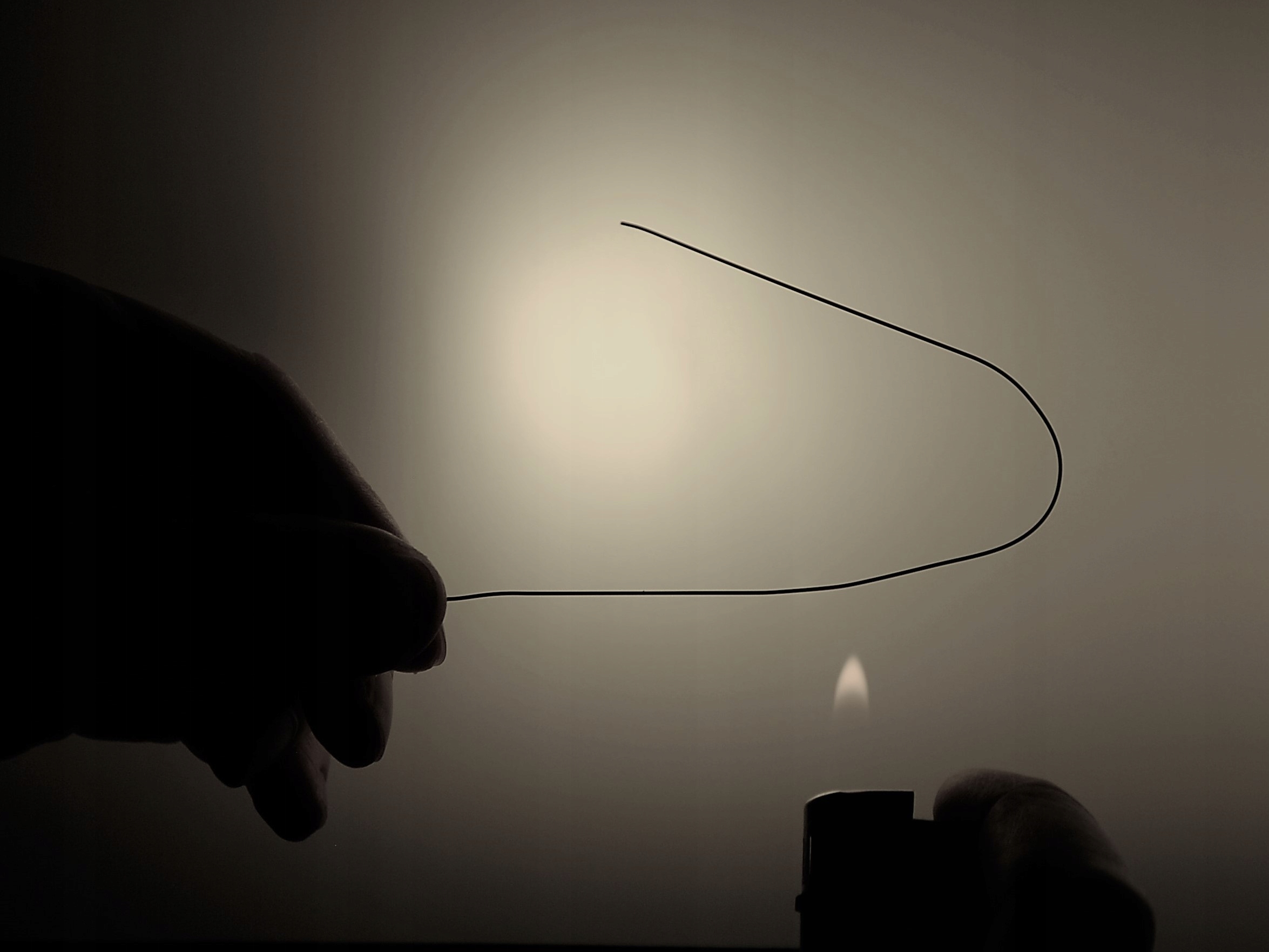 Проволока из сплава НИТИНОЛА длиной около 15 см и диаметром около 0,5 мм. Температура трансформации около 60 oC.