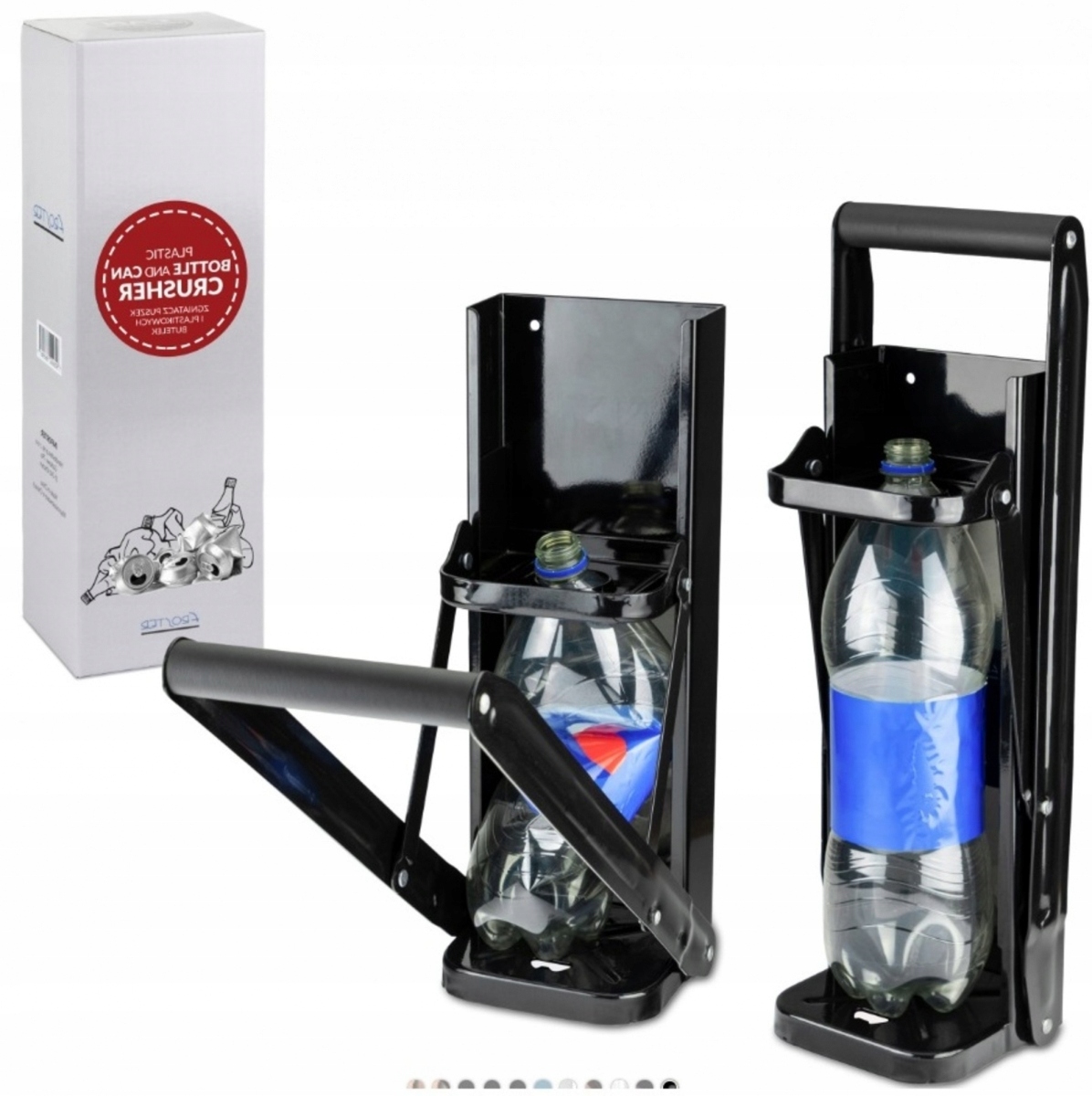 - Дробилка предназначена для сжатия бутылок, картонных коробок и алюминиевых банок из-под напитков.