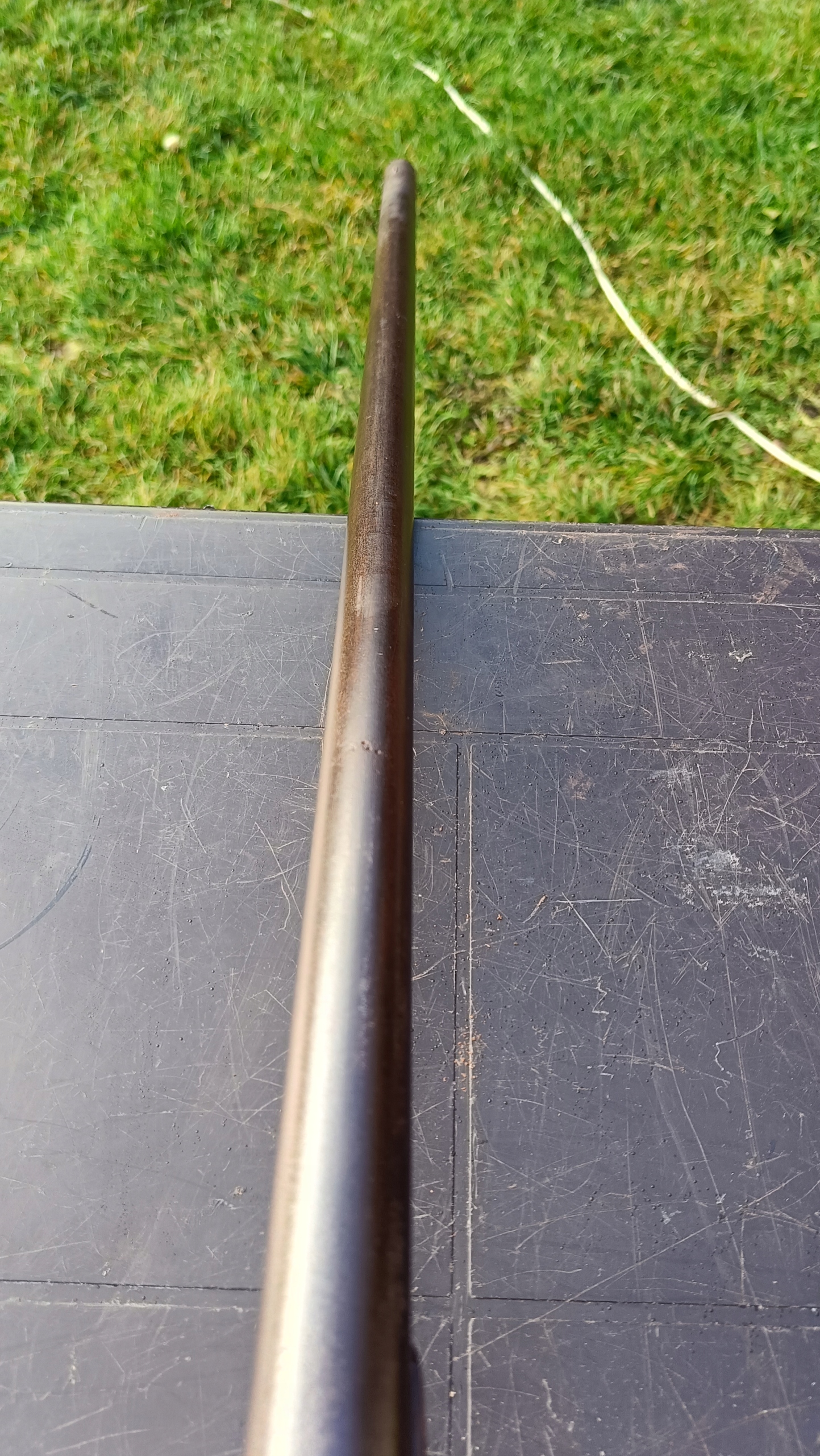 Фронтальная загрузка. Вы можете произвести сухой выстрел, двойную ничью. Замок спускового крючка работает очень хорошо, пружина крепкая. На стволе есть одна серьезная ямка и немного ржавчины внутри. Дерево все еще находится в относительно хорошем состоянии. Камин засорен и его необходимо заменить. Общая длина 141 Бочки 102 см. Диаметр ствола 17,5 см.