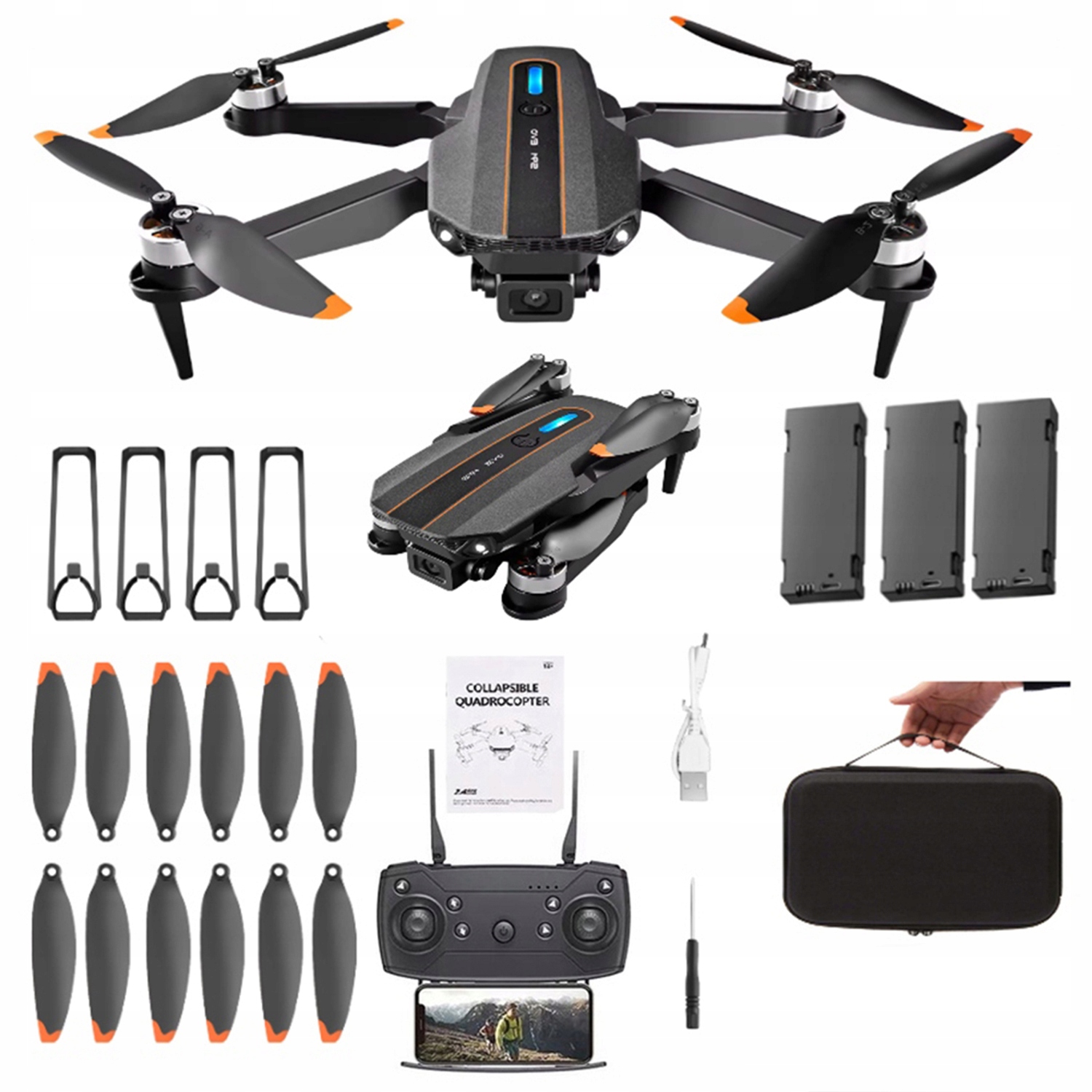 DRON 1080P Z PODWÓJNĄ KAMERĄ INTELIGENTNE UNIKANIE PRZESZKÓD TRYB BEZGŁOWY