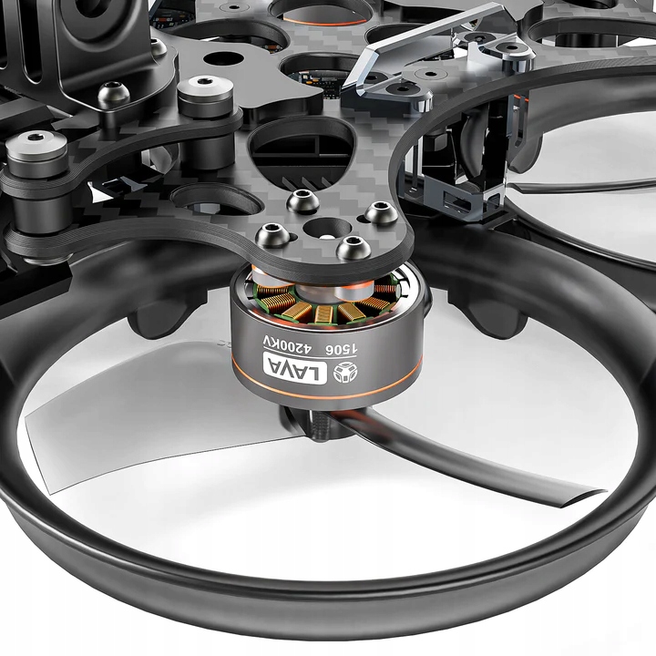 Конструкция рамы полностью соответствует аэродинамическому принципу сопла ракетного двигателя и использует преимущества Из-за разной высоты между верхним и нижним краями за счет сжатия всасываемого воздуха в воздуховоде достигается значительное повышение давления. В результате создается дополнительное давление в 200 г, одновременно увеличивая горизонтальную устойчивость киновупа. Благодаря увеличенной мощности и исключительной стабильности полета выполнение сложных маневров, таких как крены и повороты, приводит к исключительно стабильным и точным реакциям. Пилоты получат еще больше удовольствия от полета.