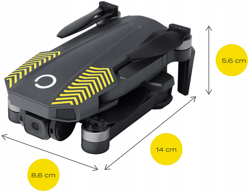 - Компактные размеры дрона - 14 х 8,6 х 5,6 см позволяют брать его куда угодно