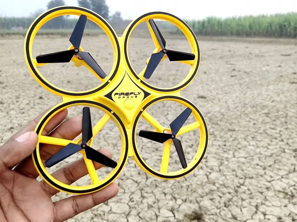 Игрушка активируется при нажатии и удержании кнопки на дроне.