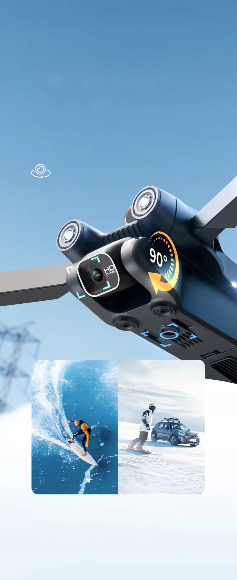 Безголовый режим, режим удержания высоты, режим 3D-просмотра, оснащен камерой со светодиодной подсветкой, G-сенсором, 3D-вращением, Посадка и взлет одной кнопкой >, Управление через приложение, Голосовое управление, оснащено пультом дистанционного управления, Складной, Интеллектуальная функция автоматического обхода препятствий, Бесщеточные двигатели