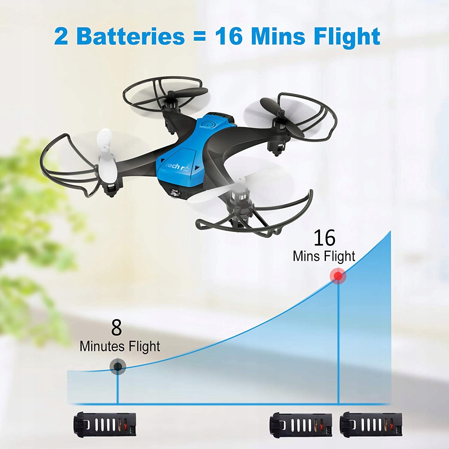 Мини-дрон с 2-мя высокопроизводительными модульными батареями на 16 минут полета. Аккумулятор просто заряжается с помощью прилагаемого USB-кабеля для зарядки, защищенного от перенапряжения, перегрузки и короткого замыкания.