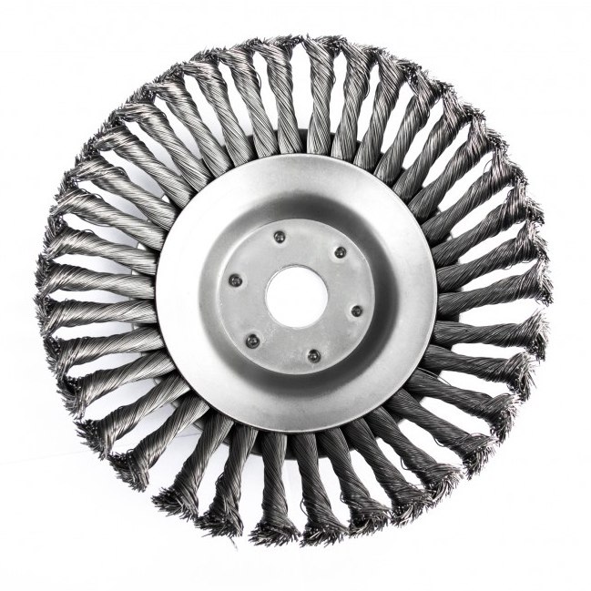 Щёточный диск изготовлен из высококачественной стали, устойчивой к центробежным нагрузкам и очень высоким скоростям до 10 000 об/мин. Его можно использовать непосредственно для таких устройств, как коса или триммер, как бензиновые, так и электрические.