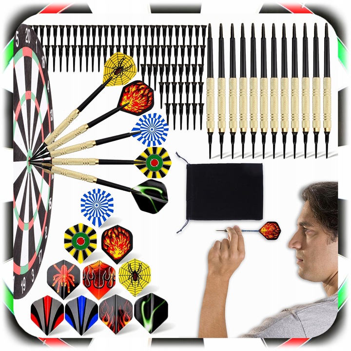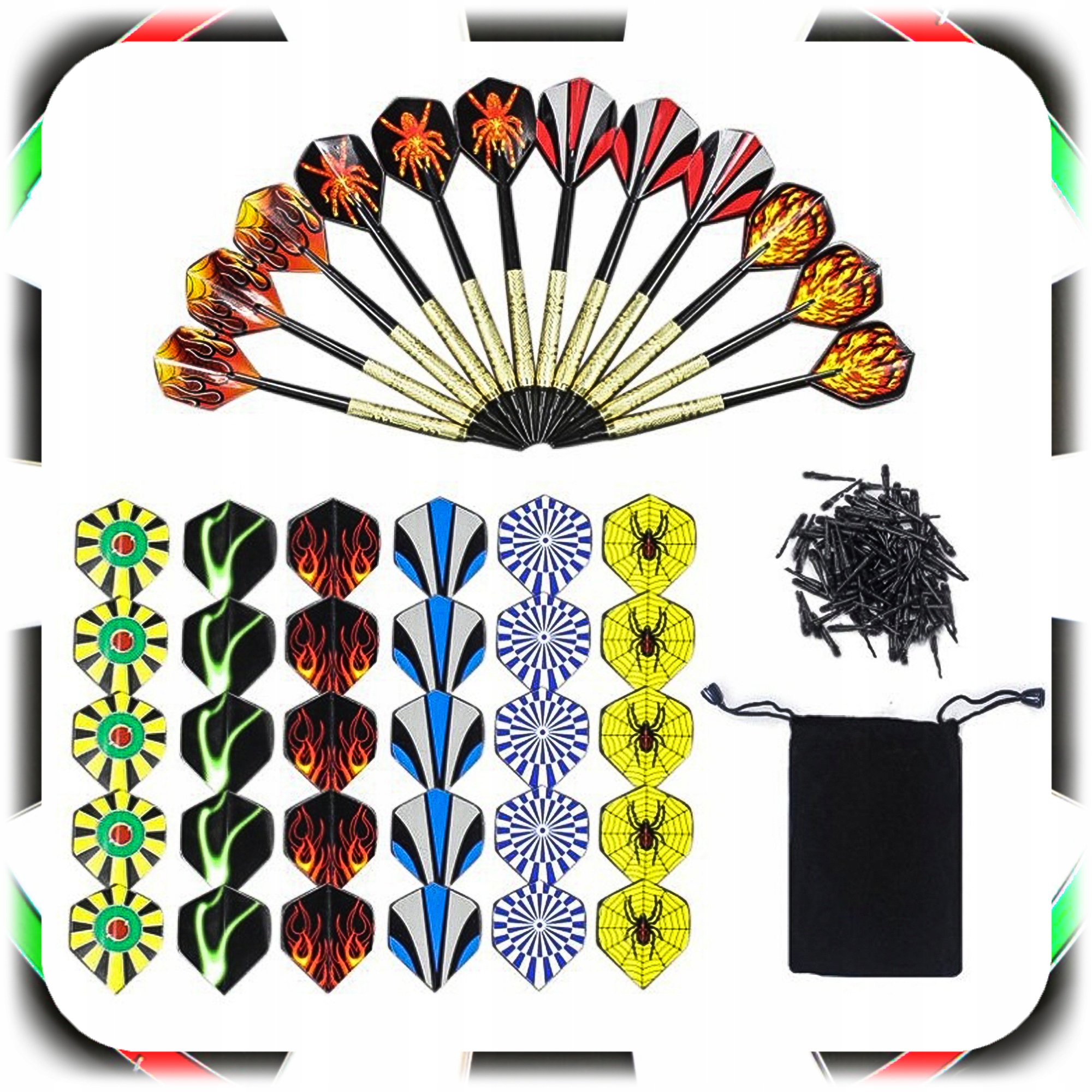 ПОЛНЫЙ НАБОР ДРОТИКОВ ИЗ 12 ДРОТИКОВ, 110 НАКОНЕЧНИКОВ, 42 ПЕРО + ЧЕХОЛ ДЛЯ ДАРТСОВ