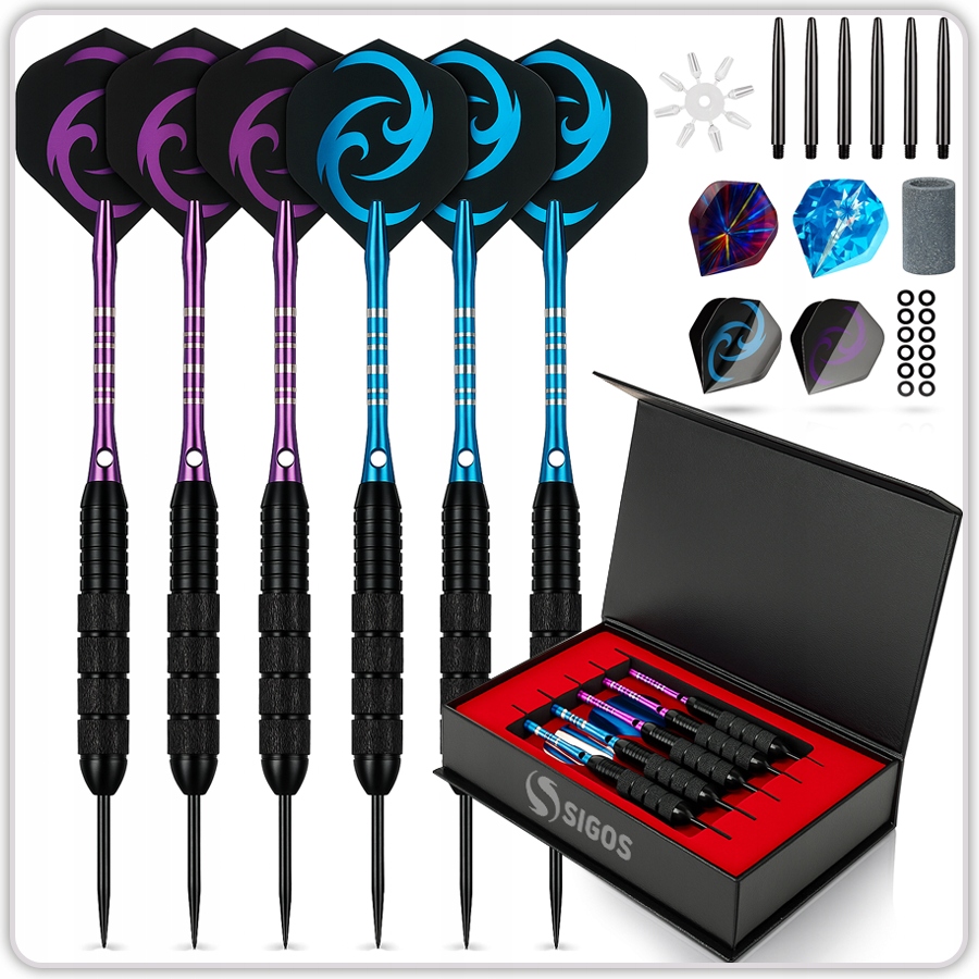 Набор из 6 дротиков – стальные наконечники + алюминиевый стержень + футляр – набор аксессуаров для дротиков