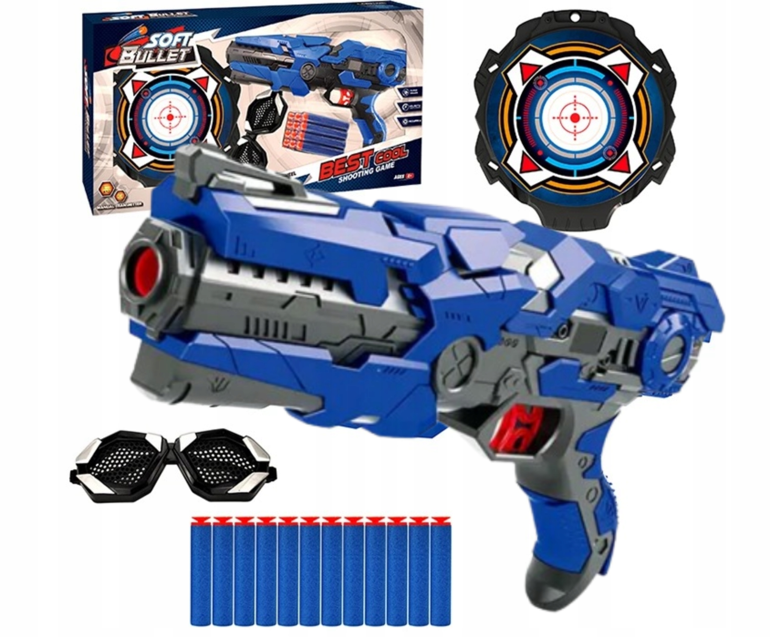 Пистолет изготовлен из сертифицированных, безопасных материалов высочайшего качества, маркирован сертификатом CE, а его производство соответствует стандарту EN 71. Пистолет и входящие в комплект аксессуары упакованы в фирменную упаковку. красочная коробочка. p>