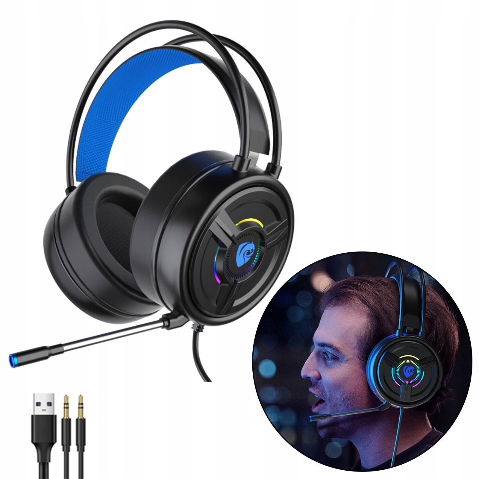Описание: Высококачественная USB-гарнитура с разъемом 3,5 мм и микрофоном для использования на компьютере. Профессиональная легкая конструкция с консольной балкой, легкая и без напорной головки, подходит для геймеров. С красочным круглым дышащим светом, чувствительным на 360° микрофоном. Большой 50-мм динамик с 4D, HD. стерео и встроенные наушники с эффектом шумоподавления делают звук более четким. Наушники «все включено» по сравнению с имеющимися в продаже наушниками из искусственной кожи более мягкие и воздухопроницаемые, удобные в ношении, безболезненные и звукоизоляционные.