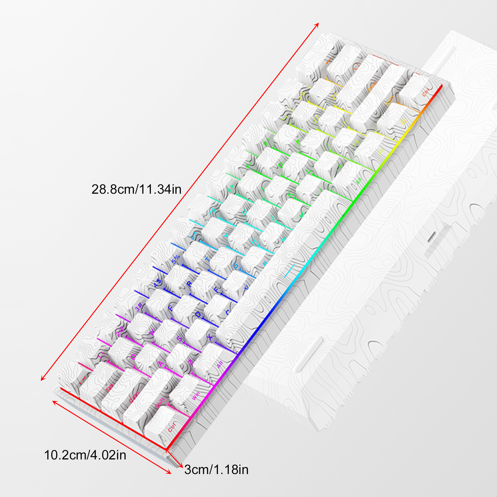 Особенность:1. Удобный дизайн. Механическая клавиатура с 61 клавишей имеет компактную раскладку, что позволяет экономить место для настольных компьютеров. Отдельный ключ и конструкция кабеля делают его более удобным для переноски и хранения. Вы можете легко организовать это в любое время.