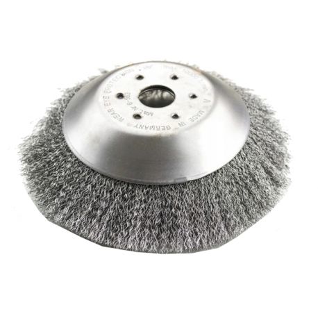 Щетка изготовлена из прямой гофрированной проволоки, что придает ей мягкую структуру. Устойчива к высоким нагрузкам центробежной силы и коррозии.
