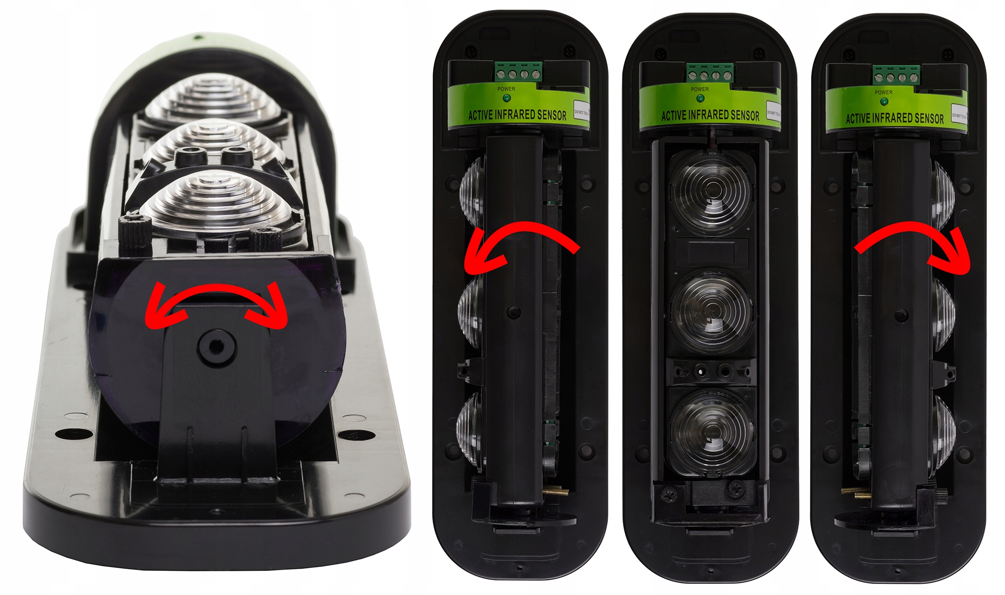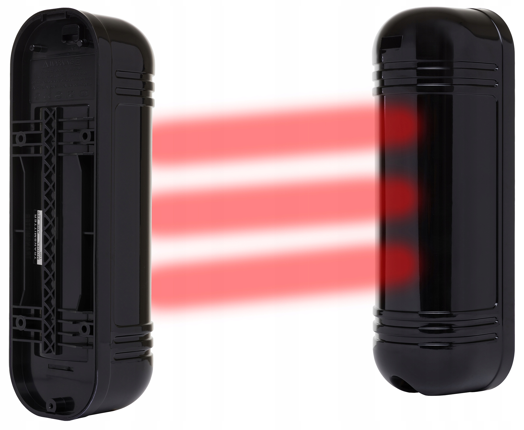 Детектор состоит из двух элементов (передатчика и приемника), установленных друг напротив друга. Оба элемента должны быть запитаны, поэтому к обоим необходимо подключить кабель питания на 12 В. Один элемент подключается к блоку управления 2-проводным кабелем, который передает сигнал в случае пересечения потоков между передатчиком и приемником.