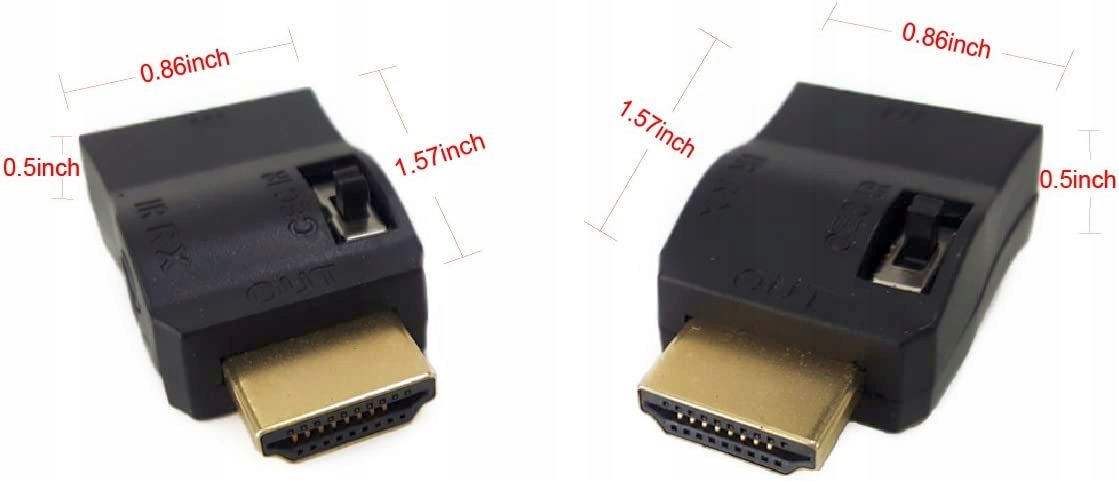 1) Мы отсоединяем существующий кабель HDMI от обоих устройств, размещаем адаптеры IR-HDMI в розетки HDMI и помещаем в них кабель HDMI. Мы уверены, что переключатели на обеих адаптерах помещаются в положение IR