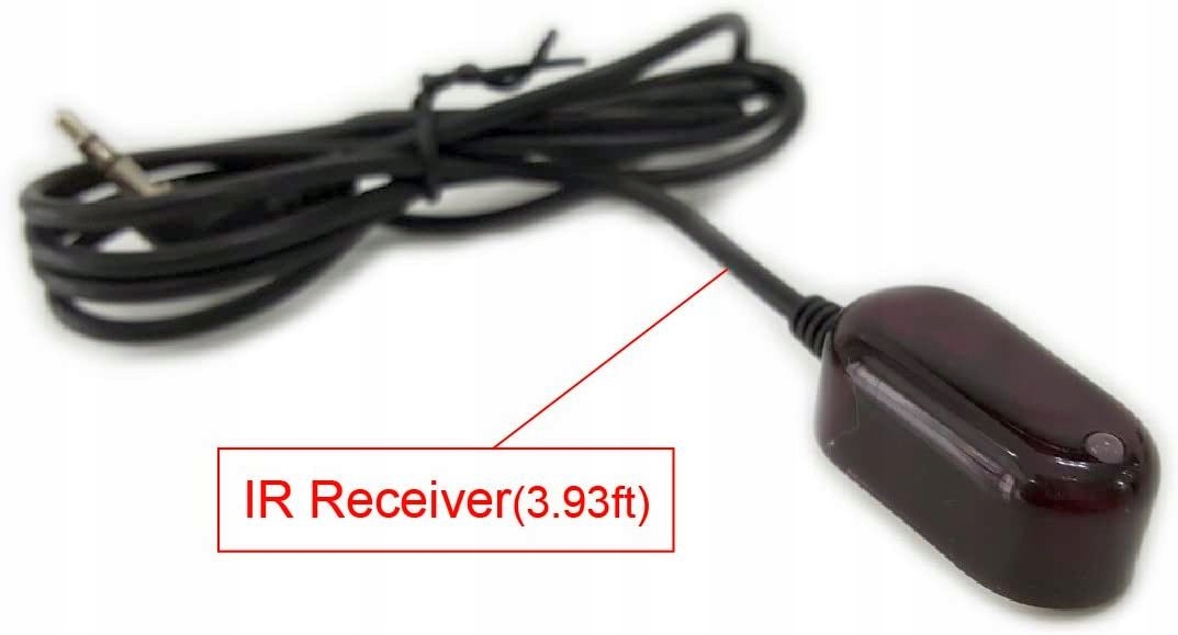 2), мы размещаем приемник (более крупный), чтобы он находился в поле зрения пульта дистанционного управления (приемник имеет самостоятельную ленту и может быть приклеена к гладкой поверхности). Плагин Mini Jack приемника подключен к адаптеру IR-HDMI