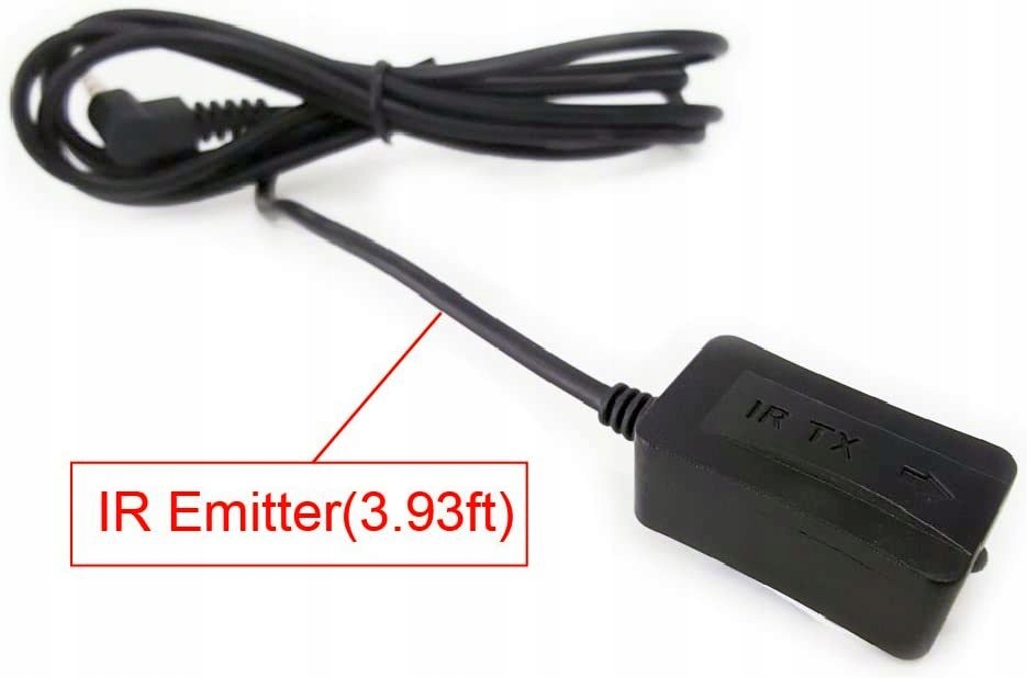 3) ИК -передатчик (меньший) помещается рядом с датчиком устройства, которое мы хотим контролировать. Подключите плагин Mini Jack-приемник к адаптеру IR-HDMI