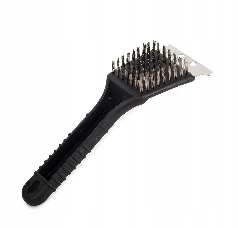 - Щётка изготовлена из очень прочной и прочной проволоки, что позволяет тщательно очищать решетку, а стальной скребок обеспечивает более тщательную очистку.