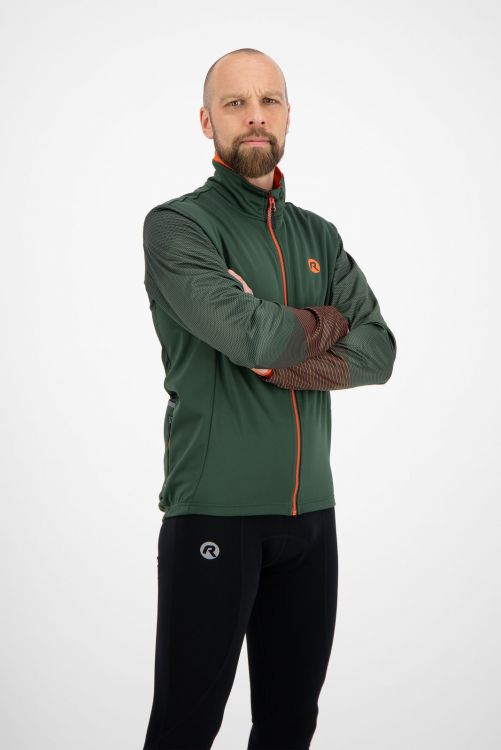 Зимняя куртка Rogelli | ЗЕЛЕНЫЙ/ОРАНЖЕВЫЙ - мужская велосипедная куртка с мембраной Softshell
