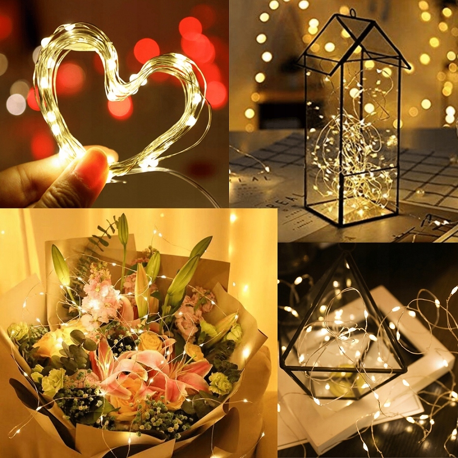 - Микросветодиод, закрепленный на мягком, гибком посеребренном медном проводе.Общая длина комплекта: 10 м.